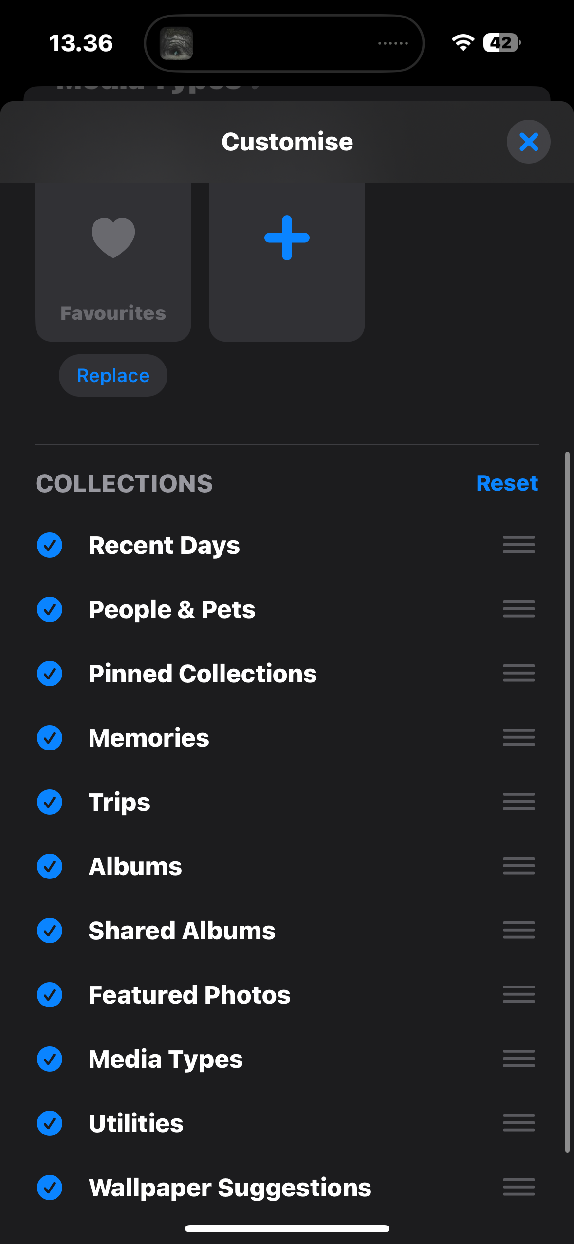 Aivan alimmaisena löytyy medioiden tyypit, jonne on omalla laitteellani jaoteltu kaikki videot, selfiet, livekuvat ja pystykuvat omiksi osioikseen. Apuohjelmat-osiosta löytyy esimerkiksi poistetut sekä piilotetut kuvat. Halutessaan kuvat-sovelluksen kaikkia yllä mainittujen kansioiden ja jaotteluiden näkyvyyttä sovelluksessa on mahdollista muokata. Muokkauksia voi tehdä esimerkiksi näkyviin suosituksiin, albumeihin ja muistoihin. Käytännössä näkyvillä olevat kansiot voi korvata eri aihepiirien kansioilla ja muistoilla. Osiot on mahdollista myös piilottaa kokonaan tai niiden näkyvää järjestystä pystyy muokkaamaan.