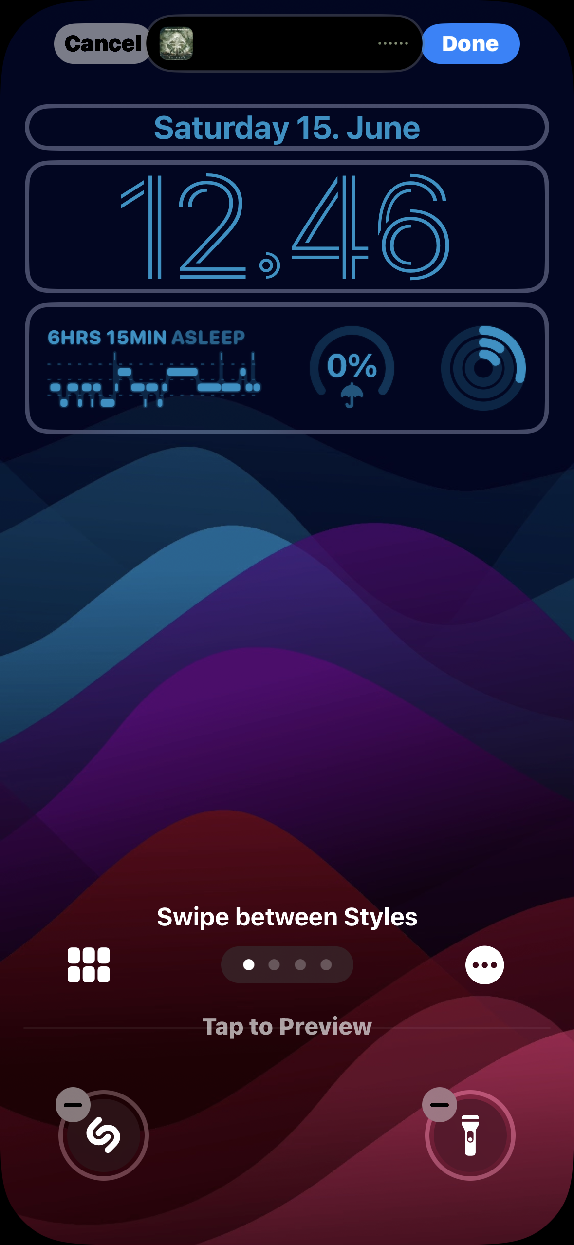 Apple on tuonut lukitusruudulle mahdollisuuden vaihtaa alareunojen oletuskuvakkeita. Ne ovat vuosikausia olleet oletuksena taskulamppu ja kamera, mutta nyt kuvakkeet voi valita mieleisekseen tai kuvakkeet saa reunoista pois kokonaan.