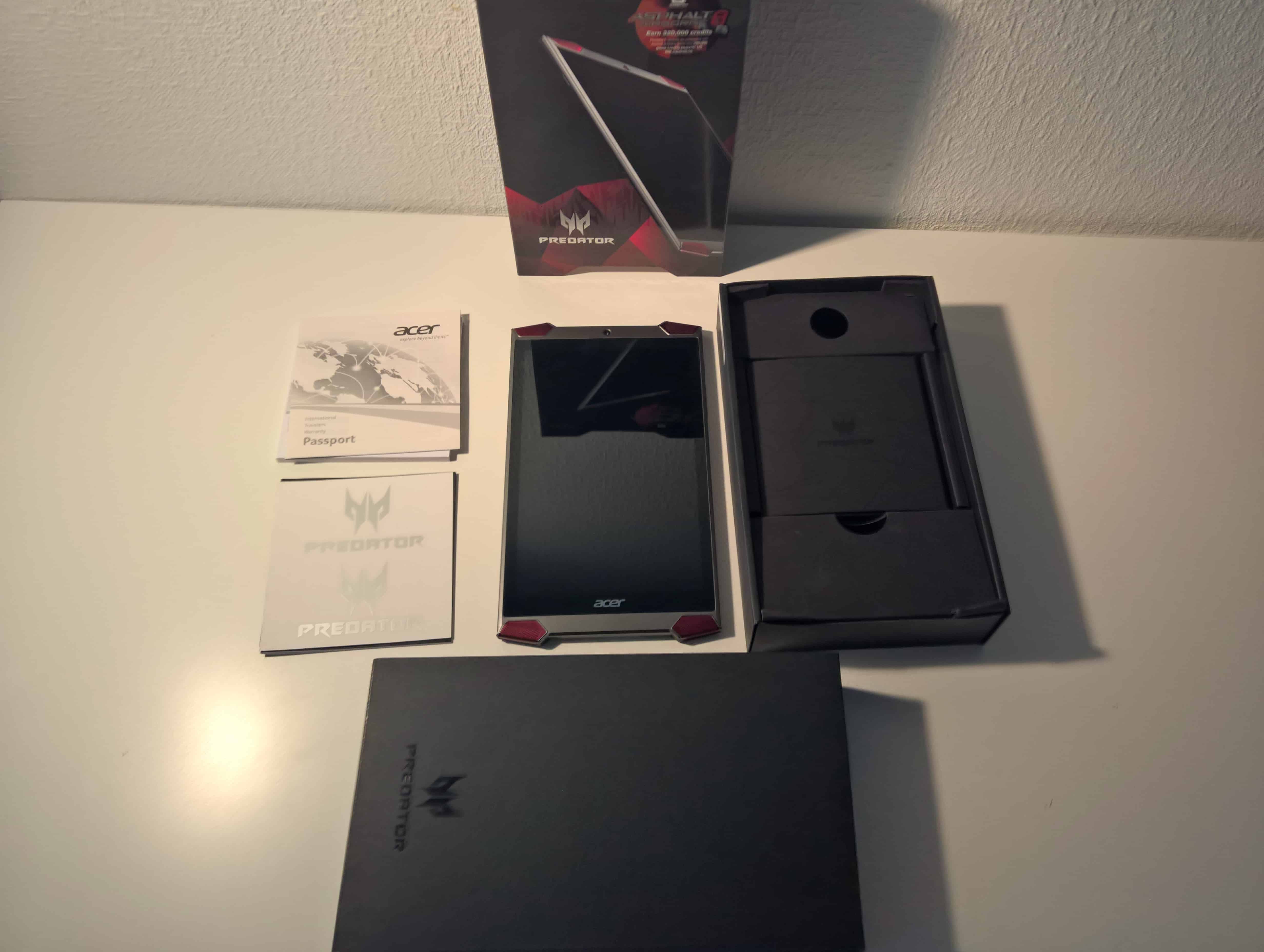 Acer Predator pelitabletti painaa vain 350g ja on mitoiltaan seuraavanlainen: Pituus 218mm, Leveys 127mm ja paksuutta tabletilta löytyy 8.7mm. Tabletin sisältä löytyy Intel Atom x7-Z8700 Quad Core 1,6 GHz prosessori, RAM-muistia 2GB ja 32GB sisäistä muistia, joka on laajennettavissa 128GB muistikortin avulla. Tabletin näyttö on 8-tuumainen Full HD IPS näyttö, joka tarjoaa 100% NTSC-väriavaruuden toiston. Grafiikkaa pyörittää Intel HD Graphics (Gen 8-LP, 600 MHz). Akku on kooltaan 4550mAh ja Acer lupailee 8.5-tunnin käyttöaikaa. Predator tabletista löytyy myös kaksi kameraa, takakamera on 5MP ja etukamera 2MP. Tabletista löytyy myös 1xUSB-portti.