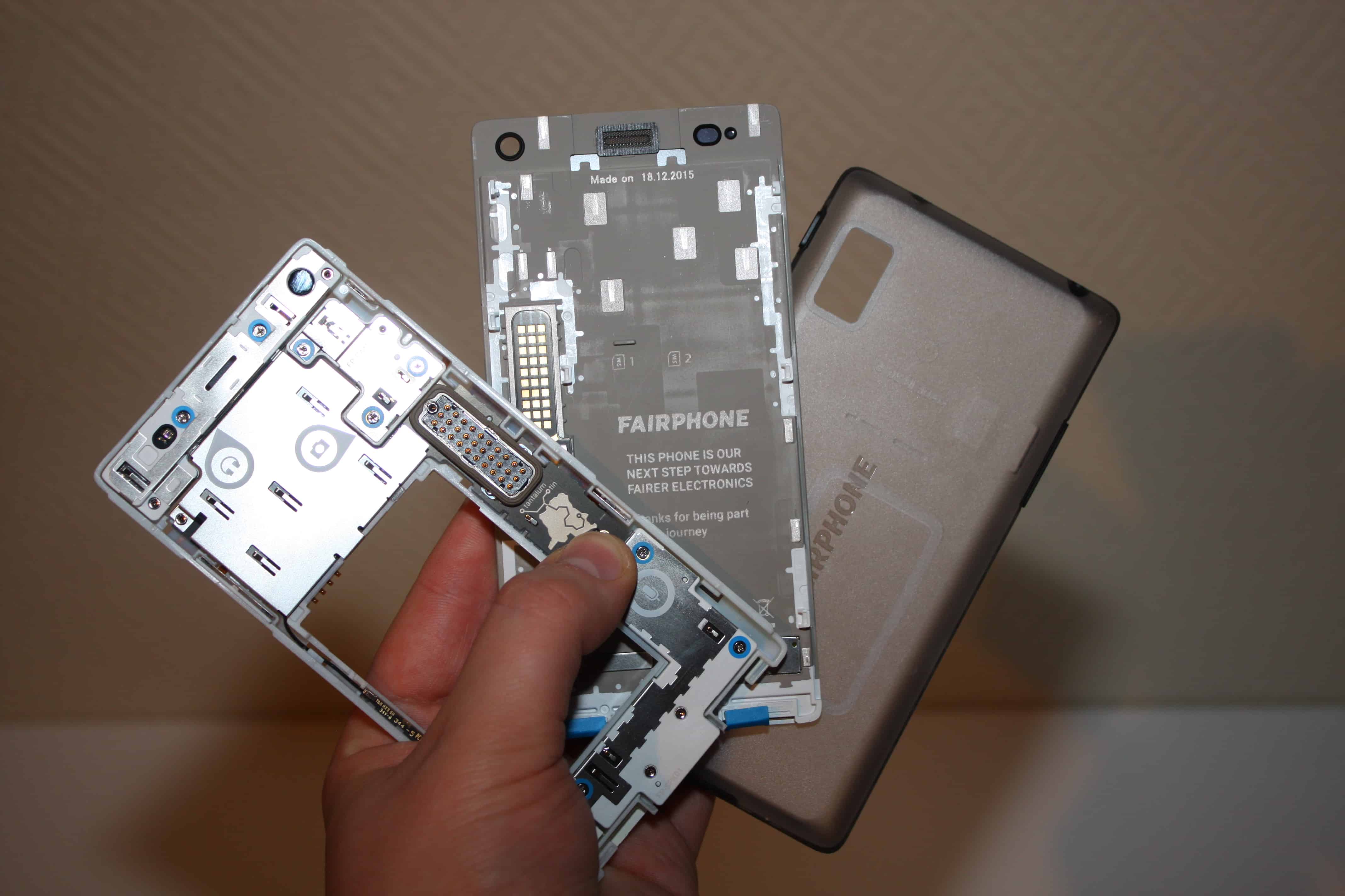 Saimme SuomiMobiilin testiin uuden Fairphone 2 -puhelimen. Fairphone 2 on valmistettu kestävän kehityksen periaatteen pohjalta, joten puhelin on suunniteltu palvelemaan käyttäjäänsä useiden vuosien ajan. Se on maailman ensimmäinen modulaarinen älypuhelin, sillä käyttäjä voi itse vaihtaa rikkoutuneet osat ilman erityistä teknistä osaamista. Esimerkiksi rikkoutuneen näytön voi vaihtaa itse uuteen muutamassa kymmenessä sekunnissa. Myös kamerayksikkö, akku sekä mikrofoni-latausliitin-moduuli ovat vaihdettavissa.