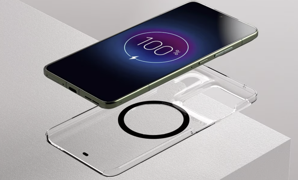Puhelimen mukana toimitettava magneettikuori mahdollistaa langattoman latauksen ja tarjoaa samalla kevyen suojan puhelimen ohuelle rungolle. Kuori on suunniteltu yhteen Pantone-värien kanssa, joten se ei peitä laitteen visuaalista identiteettiä.