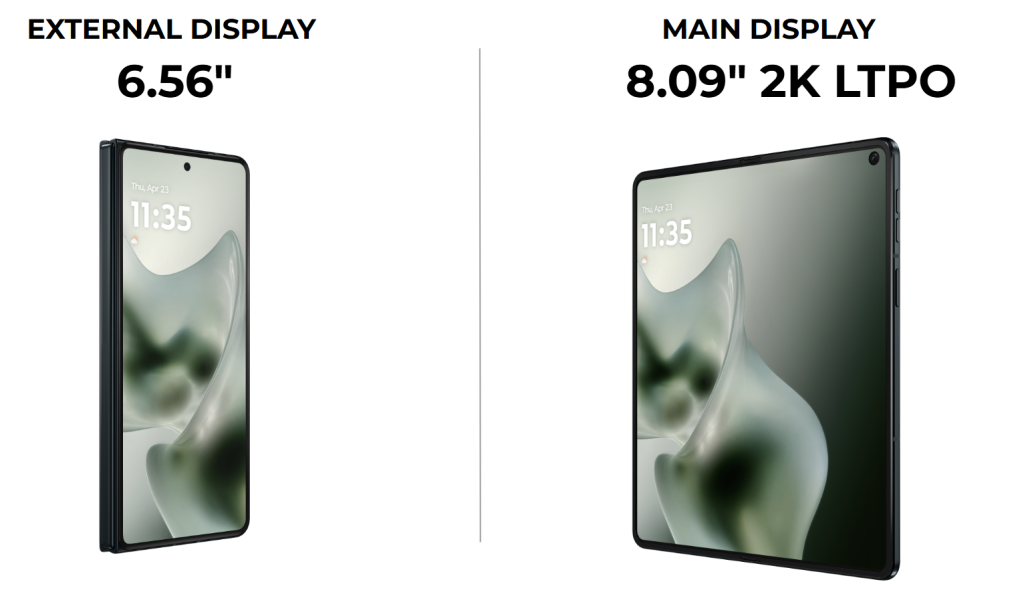 Kun puhelimen avaa, paljastuu suuri 8,09-tuumainen 2K-tarkkuuden LTPO-näyttö, joka vie Razr Foldin täysin eri kokoluokkaan kuin aiemmat Razr-mallit. Motorola lupaa mukautuvia käyttöliittymiä, joustavaa moniajoa ja parannettuja multitasking-ominaisuuksia, jotka hyödyntävät isoa näyttöpinta-alaa tehokkaasti.