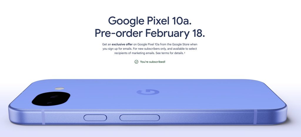 Google on avannut Pixel 10a:lle myös oman sivun, jossa käyttäjät voivat rekisteröidä sähköpostiosoitteensa. Rekisteröitymällä on luvassa yksinoikeudellinen etu Google Storeen Pixel 10a:n ostoa varten.