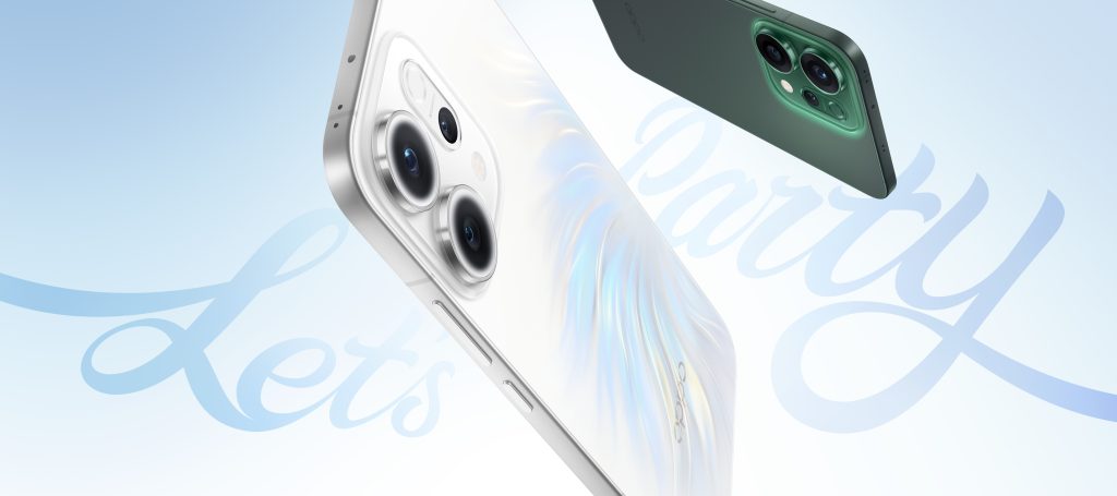 Oppon kehittämä Iridescent Glow -tekniikka saa takapaneelin elämään valon mukana, kun pintaan kaiverretut mikroskooppiset kuviot luovat helmiäishohtoisen pinnan. Tyyli pohjautuu mermaidcore-trendiin, jossa yhdistyvät fantasiamaailmoista ammennettu estetiikka ja merellinen inspiraatio. Lasinen takapaneeli on saumaton ja sitä kehystää alumiinireunus, ja koko rakenne on suojattu pölyltä ja vedeltä korkeimpien IP-luokitusten mukaisesti.