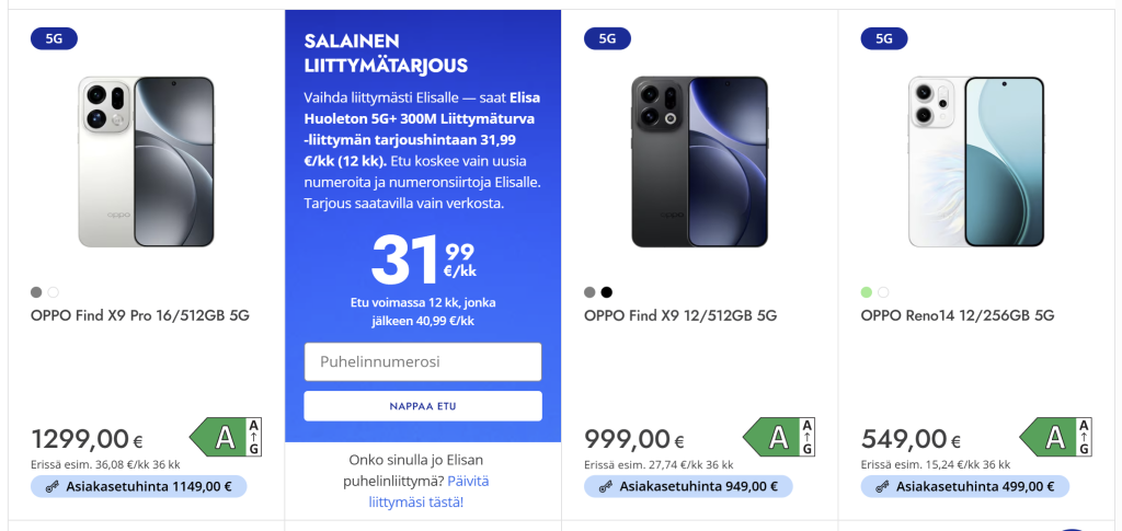 Oppo on vasta laajentanut saatavuuttaan useille jälleenmyyjille, ja samalla hintakilpailu on selvästi kiristynyt. Lisäalennukset tekevät erityisesti Reno- ja A-sarjan malleista entistä houkuttelevampia vaihtoehtoja keskihinta- ja budjettiluokassa.