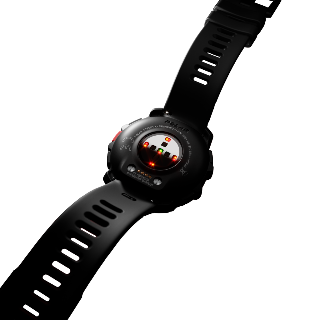 Polar kertoo suunnitelleensa Street X:n uuden sukupolven liikkujille, joiden arki yhdistää niin sisä- ja ulkotreenit kuin spontaanin liikkumisen. Kellon rakenne on vahvistettua polymeeriä, ja 8-ruuvinen runkorakenne lisää kestävyyttä pitäen painon silti maltillisena, vain 48 grammassa.