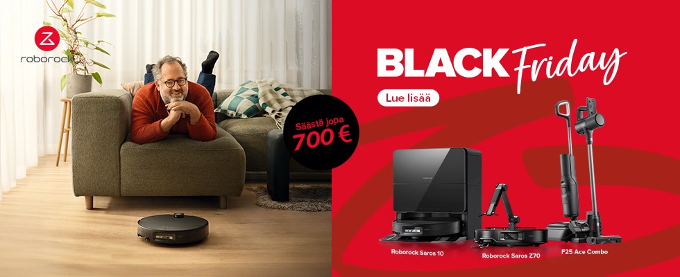 Black Friday tuo tänä vuonna alennuksella suositut Roborockin tuotteet lähtien premium-luokasta edullisiin imureihin. Alennuskampanja käynnistyy keskiviikkona 13.11. ja jälleenmyyjinä ovat Suomessa Gigantti, Power ja Verkkokauppa.com. Diilit ovat voimassa rajoitetusti niin kauan kuin varastoa riittää.