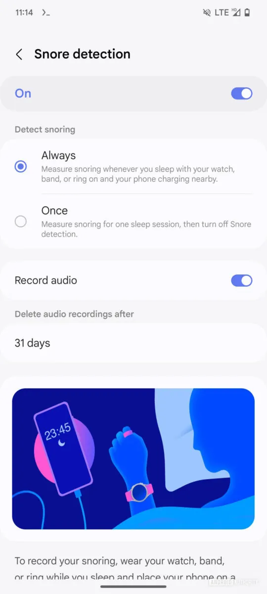 Tällä hetkellä kuorsauksen havaitseminen on käytössä jo Galaxy Watch 6 -kelloissa, joten sinällään uudesta ominaisuudesta ei ole kyse.