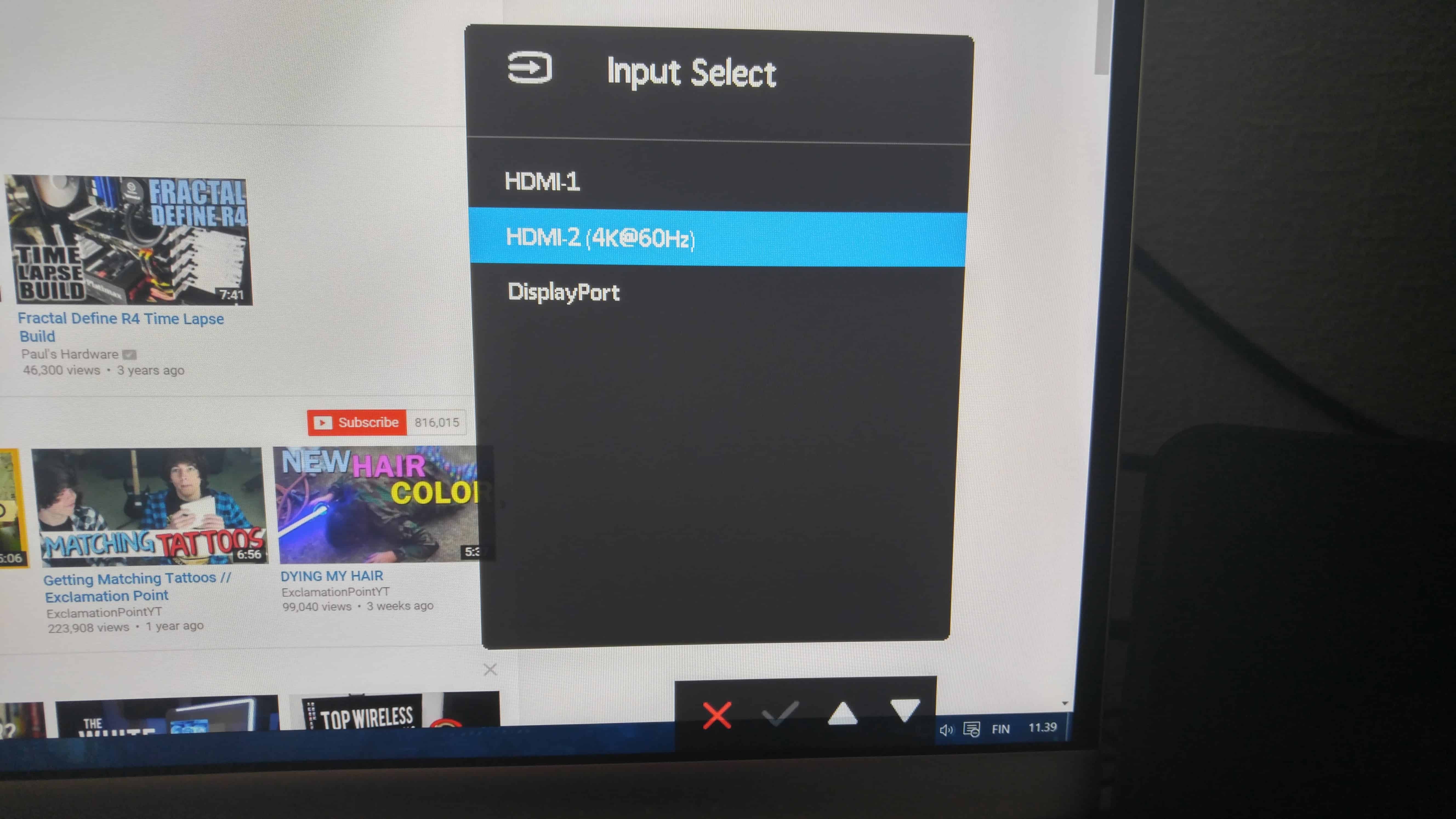 Omaan käyttöön liitännät riittivät oikein mainiosti, kiitos koneestani löytyvän HDMI 2.0 portin. Sain näin ollen 4K-kuvan 60Hz:ssä. DVI-liitäntöjä tai VGA-liitäntöjä en jäänyt kaipaamaan, ja omasta mielestä ne ovatkin jo aika vanhanaikaisia.