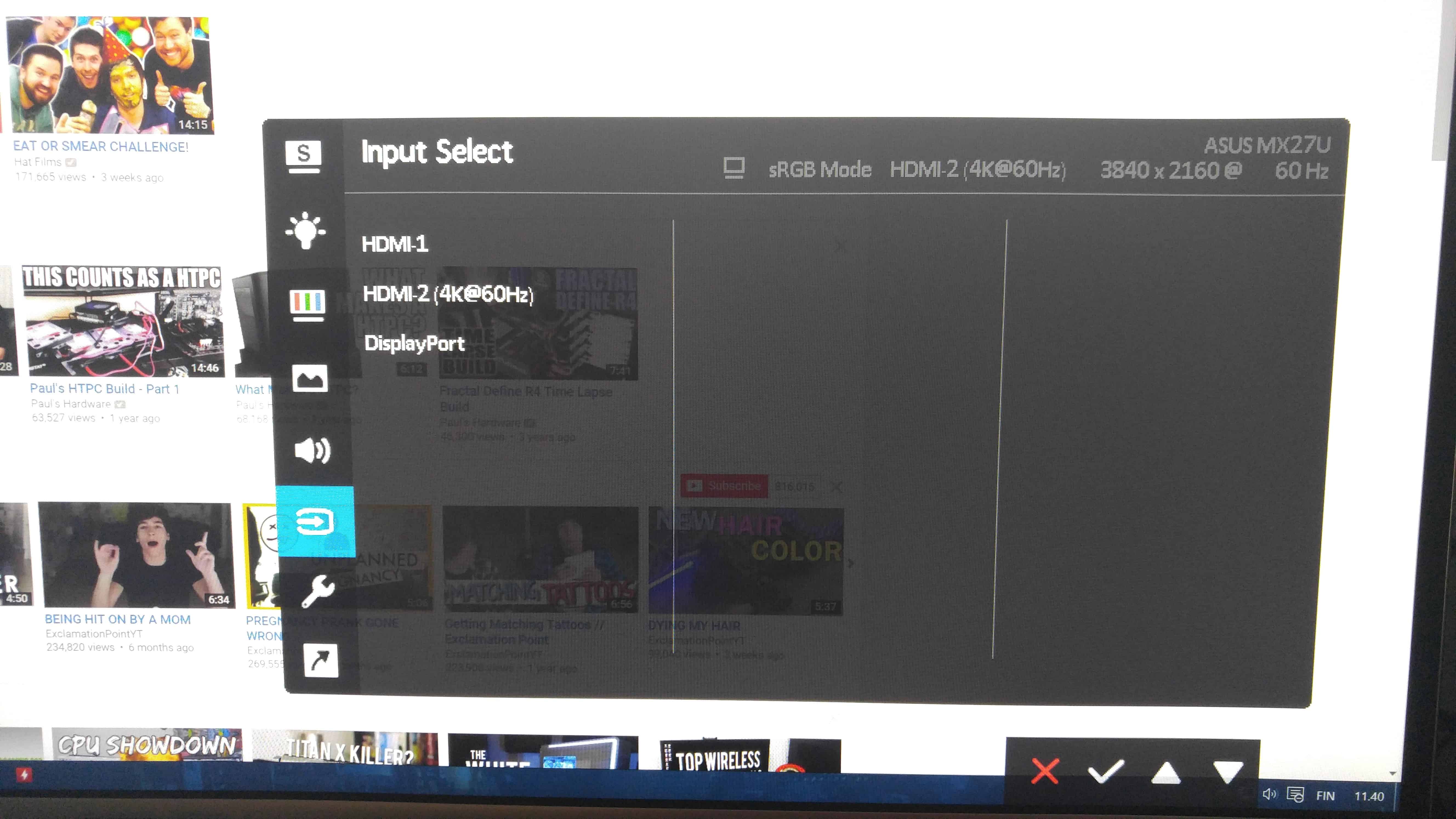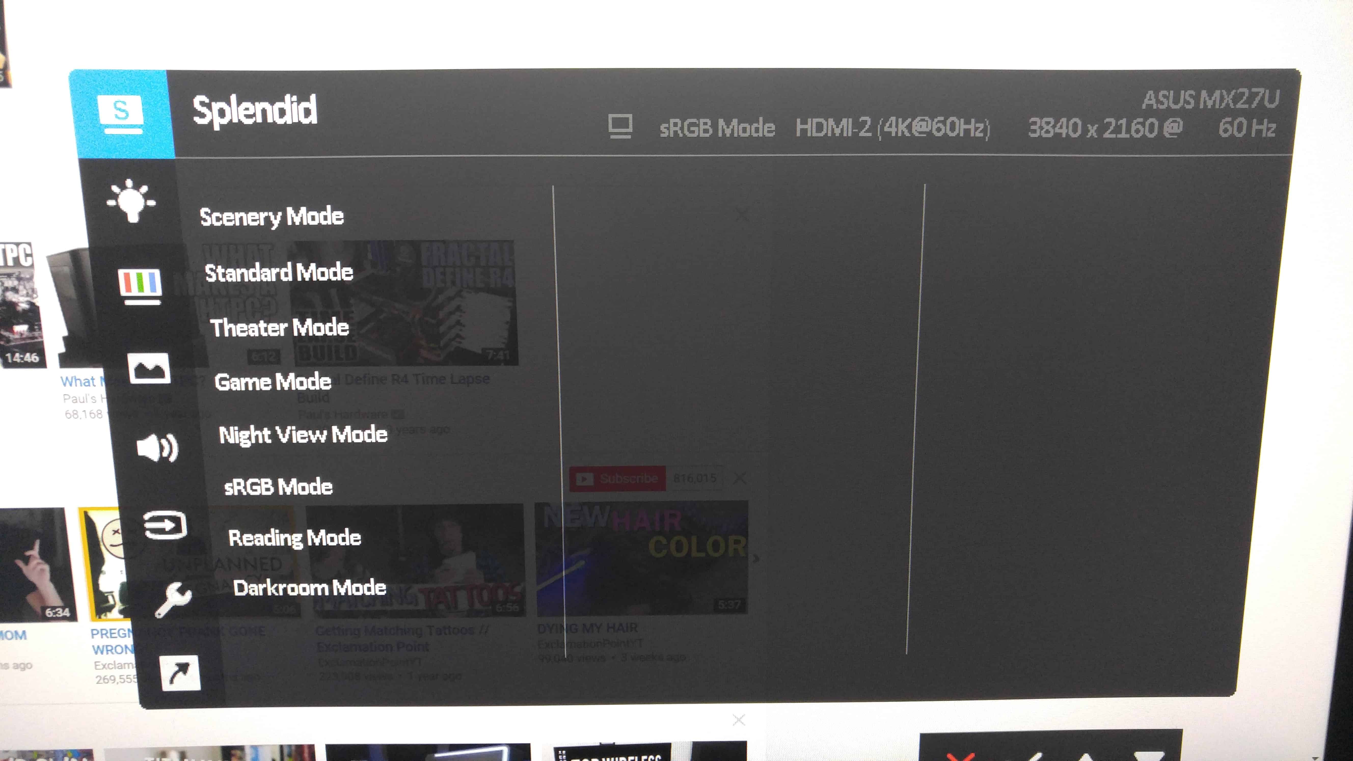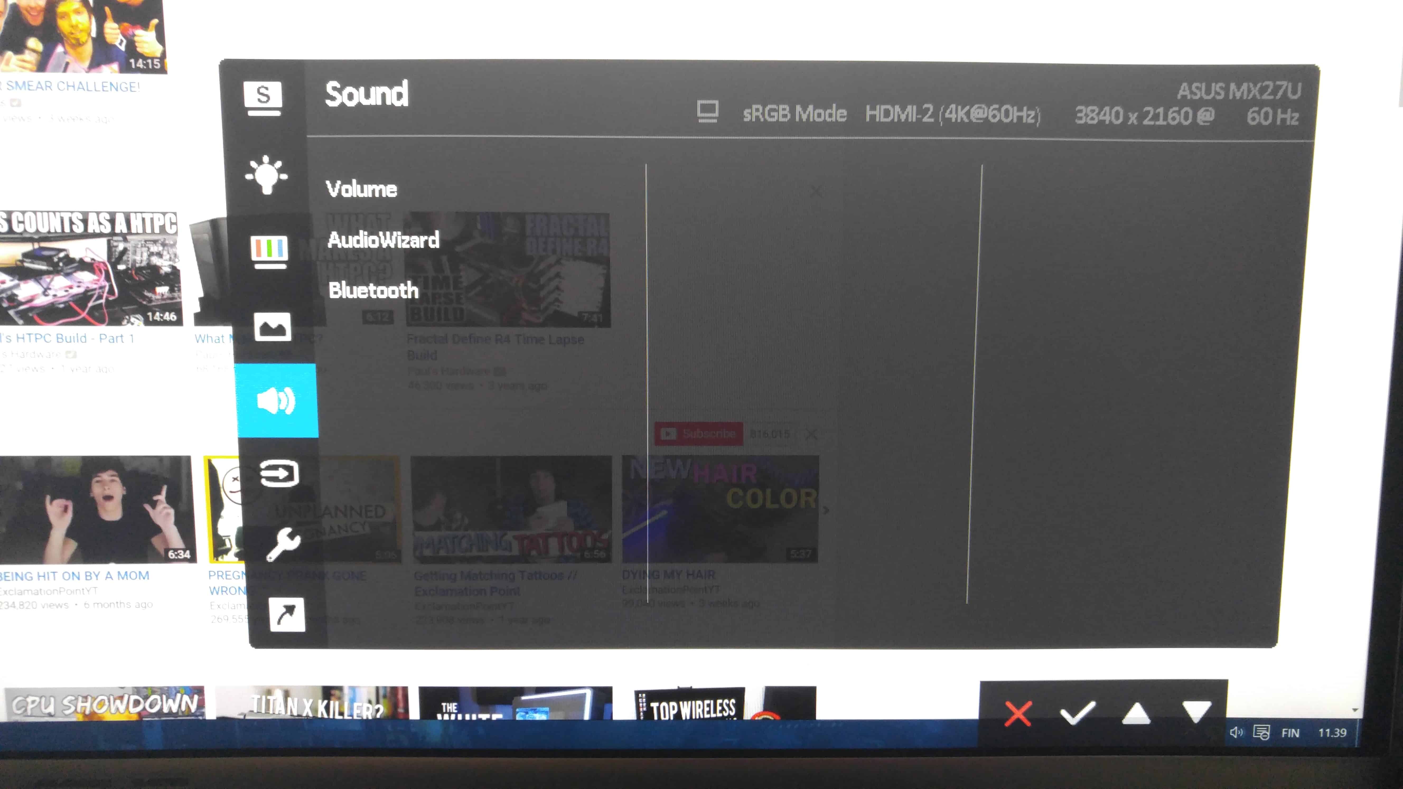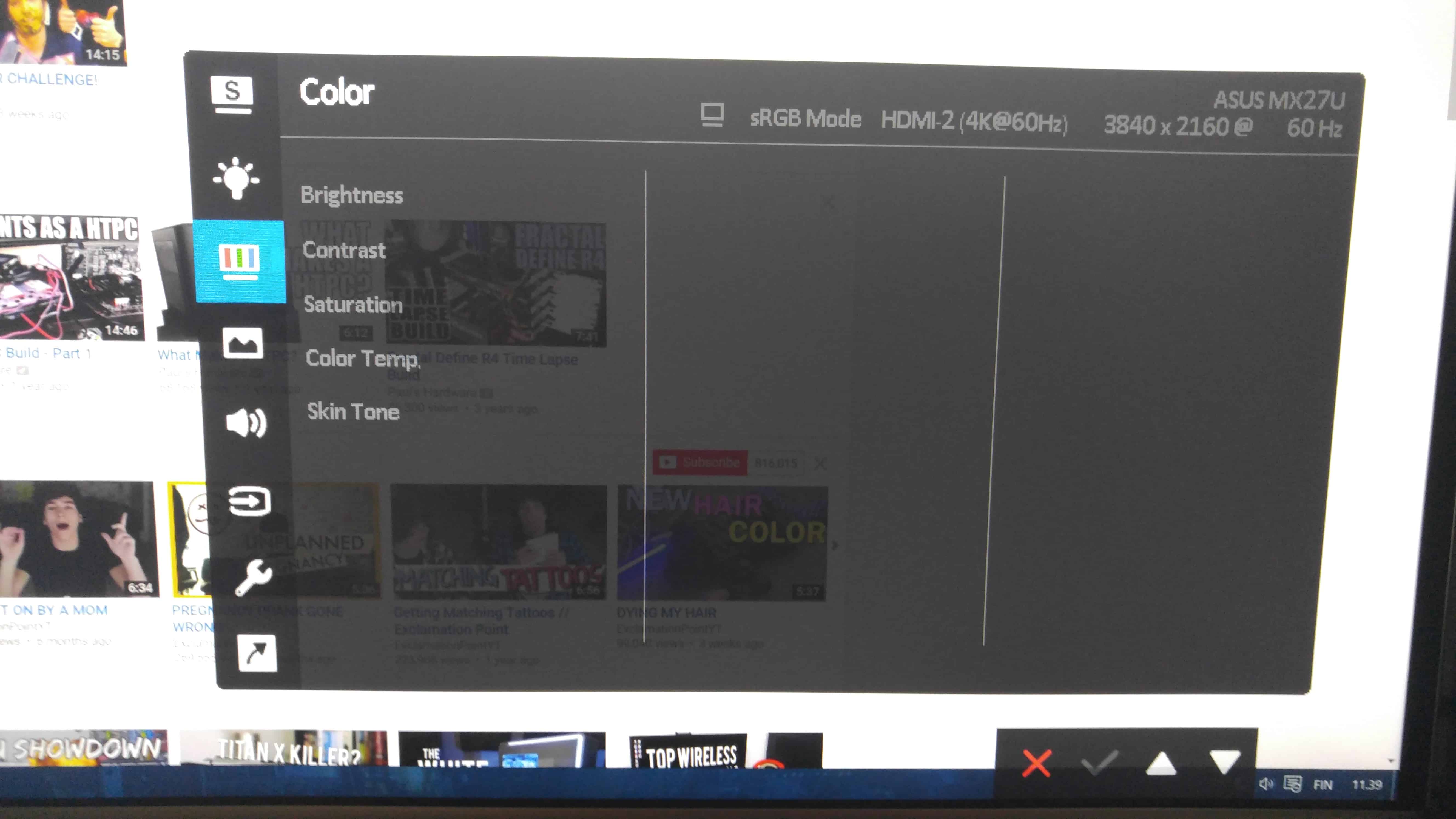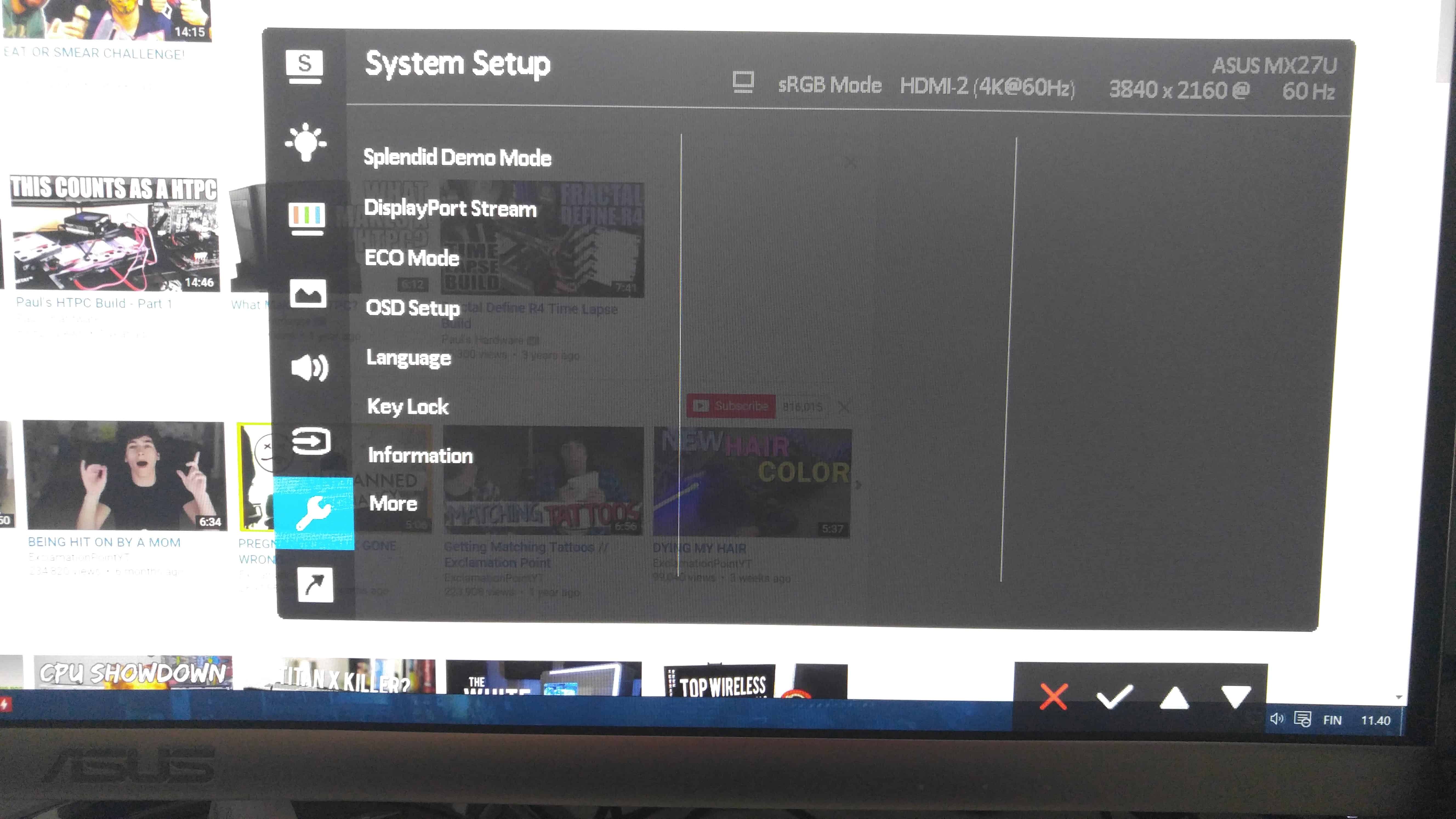 4K UHD paneeli tuottaa huimat 3,840 x 2,160 resoluution, jonka ansiosta kuvat ja videot ovat täynnä mahtavia yksityiskohtia. Myös teksti on todella tarkkaa ja lukeminen onnistuu enemmän kuin hyvin. Paneelin koko on 27-tuumaa ja kuvasuhde on 16:9. Paneelin vasteaika on 5ms, kirkkaus 300 cd/m2 ja paneeli on tyypiltään AH-IPS. En löytänyt minkäänlaisia valovuotoja näytöstä, ja olisin ollut todella pettynyt, jos niitä olisin löytänyt. Värit ovat omasta mielestäni tarkat, ei liian lämpimät, eikä liian kylmät. Toki näytön värikylläisyyttä voi muokata sille tarkoitetusta valikosta. Valittavana on kaiken kaikkiaan 10 eri värityyliä.
