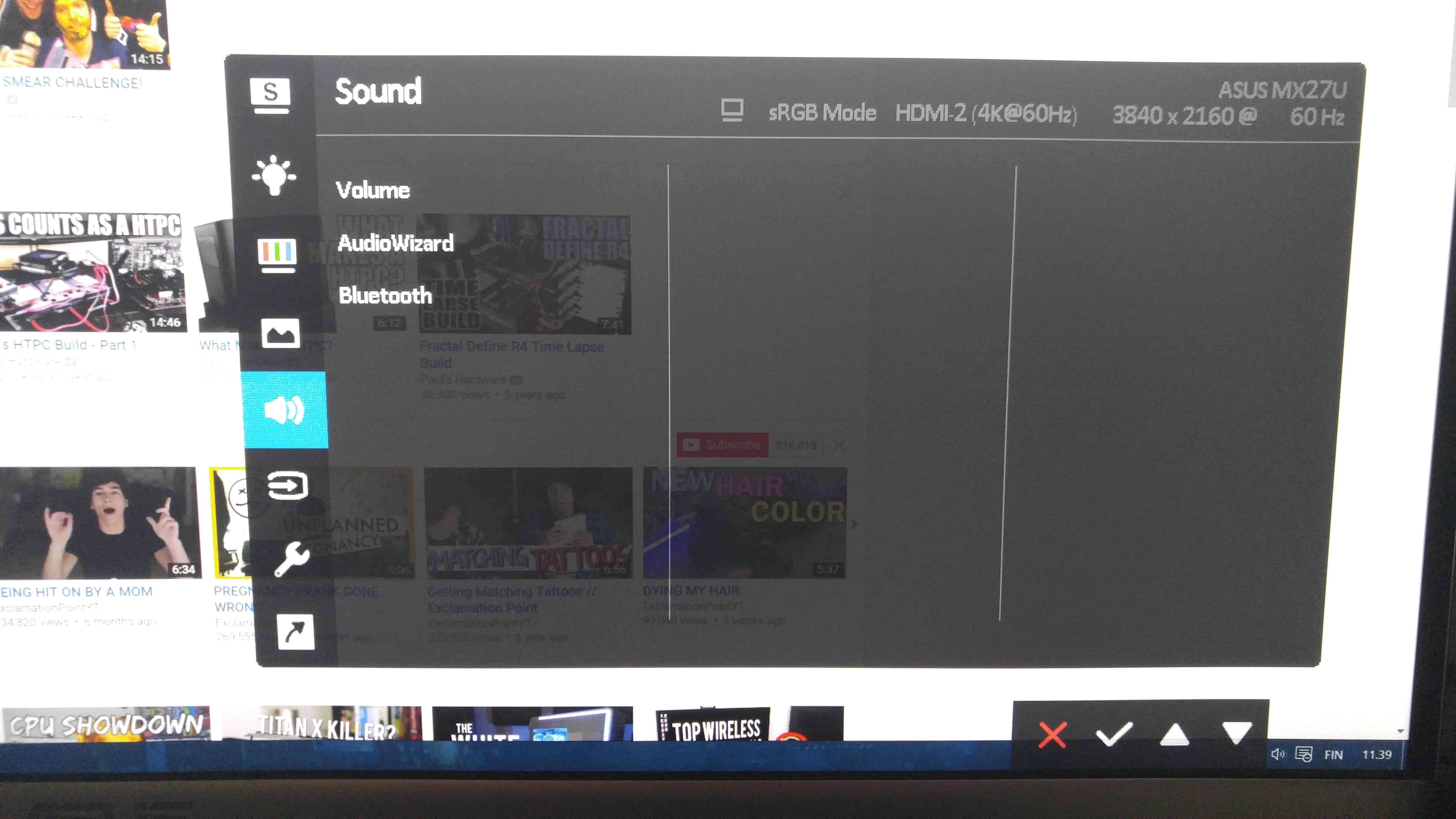 Saimme testiimme ASUSilta Designo MX-sarjaan kuuluvan 27-tuuman 4K MX27UQ -näytön. ASUSin MX27UQ-näyttö on vastikään tullut suomessa myyntiin, joten pääsimme hyvissä ajoin testaamaan näyttöä ja kertomaan mielipiteemme, kannattaako kyseistä näyttöä ostaa. Hintaa näytöllä on n. 750€, joten kyseessä ei ole mikään halpa näyttö, mutta näillä teknisillä tiedoilla, täysin varteenotettava hintaluokassaan. ASUS MX27UQ on varustettu myös Bang & Olufsen kaiuttimilla, joten äänentoistokin on sopivan laadukasta. Näytöstä löytyy myös mukava ominaisuus, nimittäin siinä on Bluetooth tuki, joten käyttäjä pystyy omalta älypuhelimelta streamaan musikkia suoraan näytön kaiuttimista, vaikka näyttö olisikin valmiustilassa.