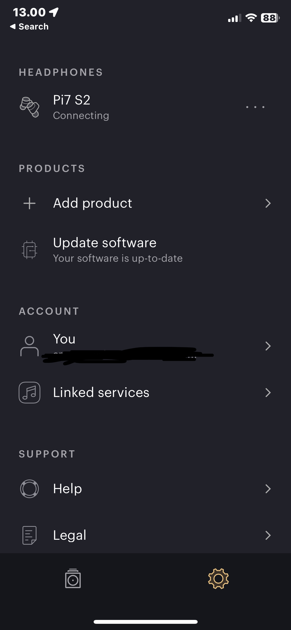 Sovelluksen kautta kuulokkeet saa myös päivitettyä ja ohjelma opasti alussa kuulokkeiden käyttöönotossa. Myös kuulokkeiden sekä kotelon akkujen varaustasot näkevät sovelluksen kautta. Paljoa tätä enempää ohjelmisto ei ominaisuuksia tarjoa. Sovelluksen suppeudesta huolimatta yhtiö pakottaa käyttäjää luomaan tilin, jotta sovelluksen sisältöön pääsee käsiksi.