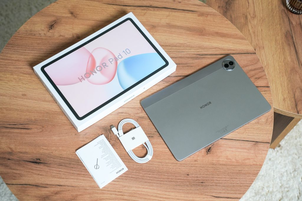 Honor Pad 10:n myyntipakkaus ja sen sisältö.