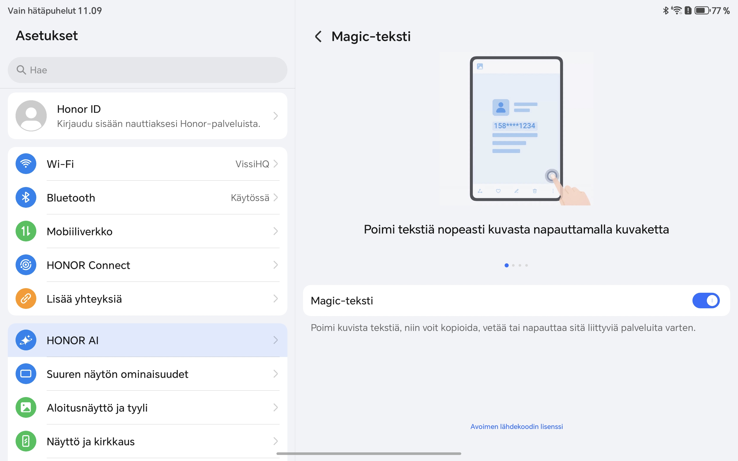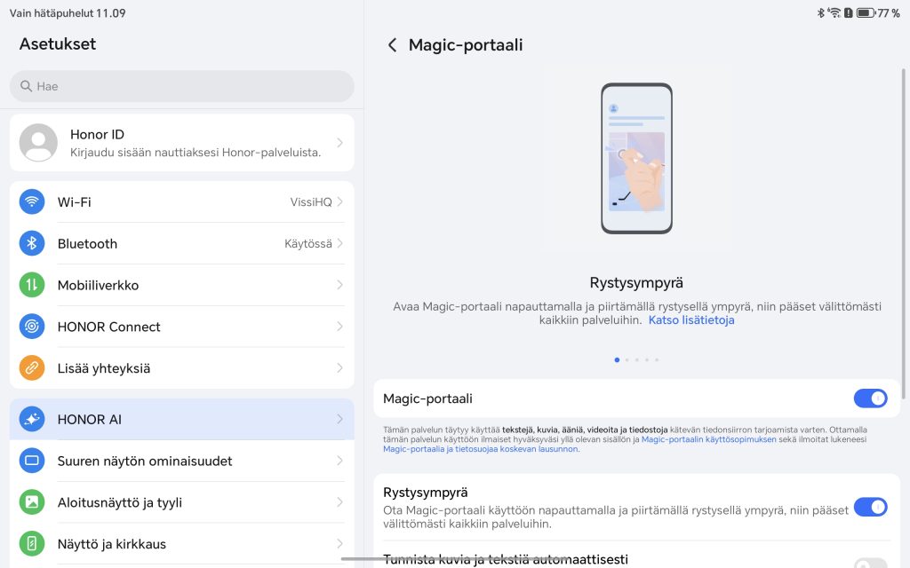 - MagicOS tarjoaa hyödyllisiä tuottavuus- ja AI-ominaisuuksia