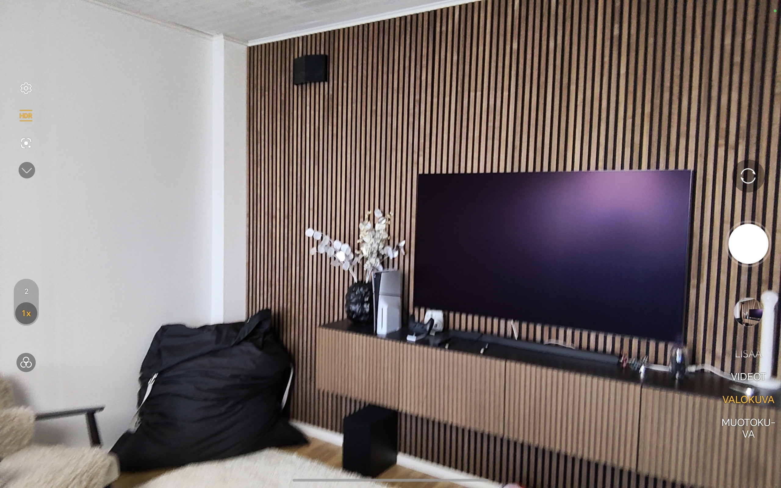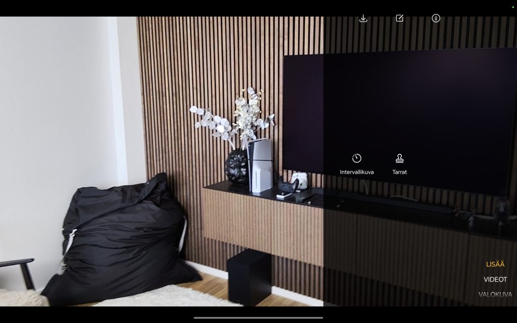 Honor Pad 10:n kamerasovellus on lähes identtinen kuin yhtiön puhelimissa, mutta luonnillisesti nyt myös suurempana. Sovelluksen vasemmassa reunassa on pikavalintoja, kuten HDR-asetukset, Google Lens -pikapainike sekä zoomauspainikkeet. Oikeassa reunassa on eri kuvaustilojen valikko sekä laukaisinpainike.