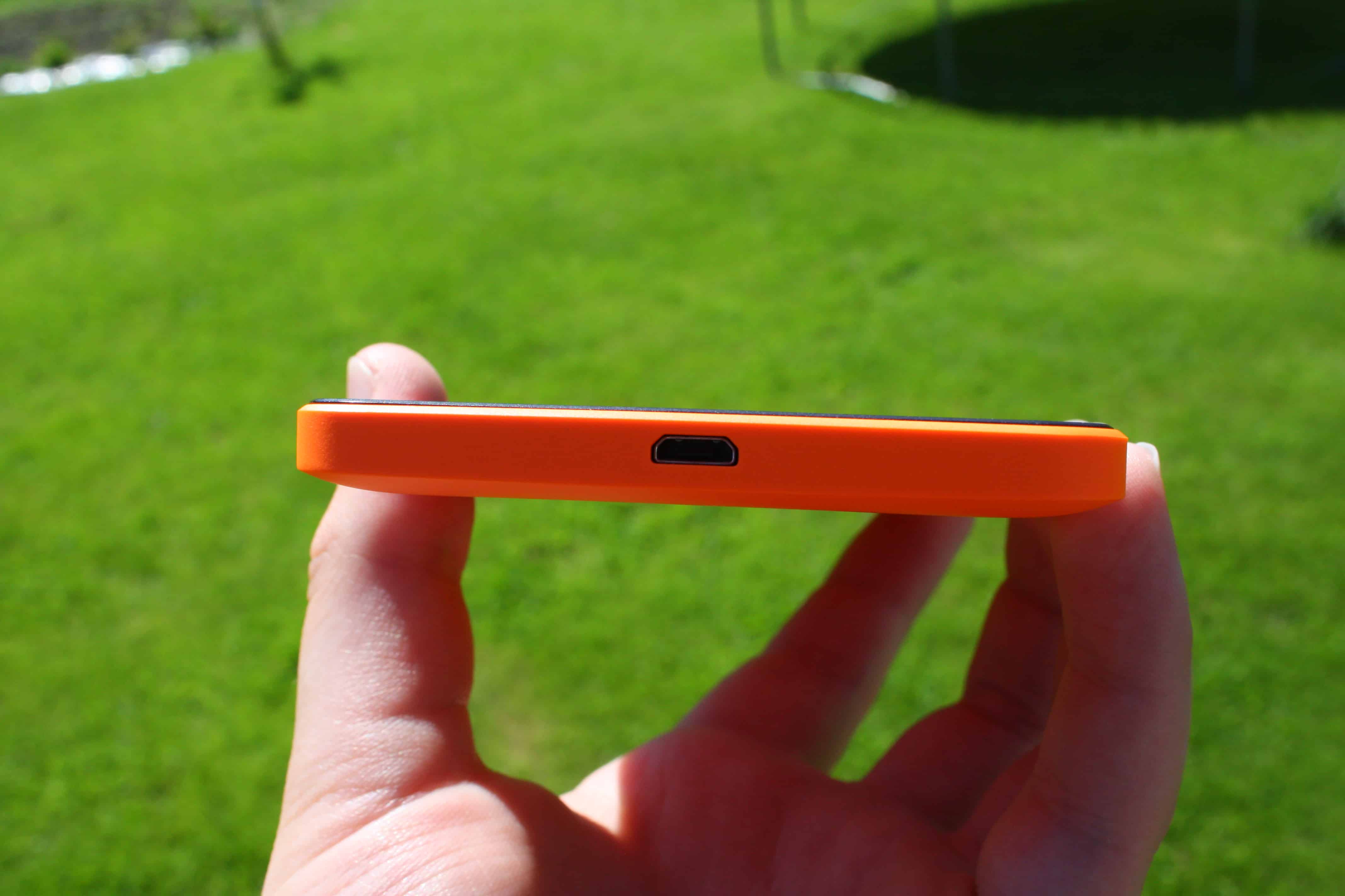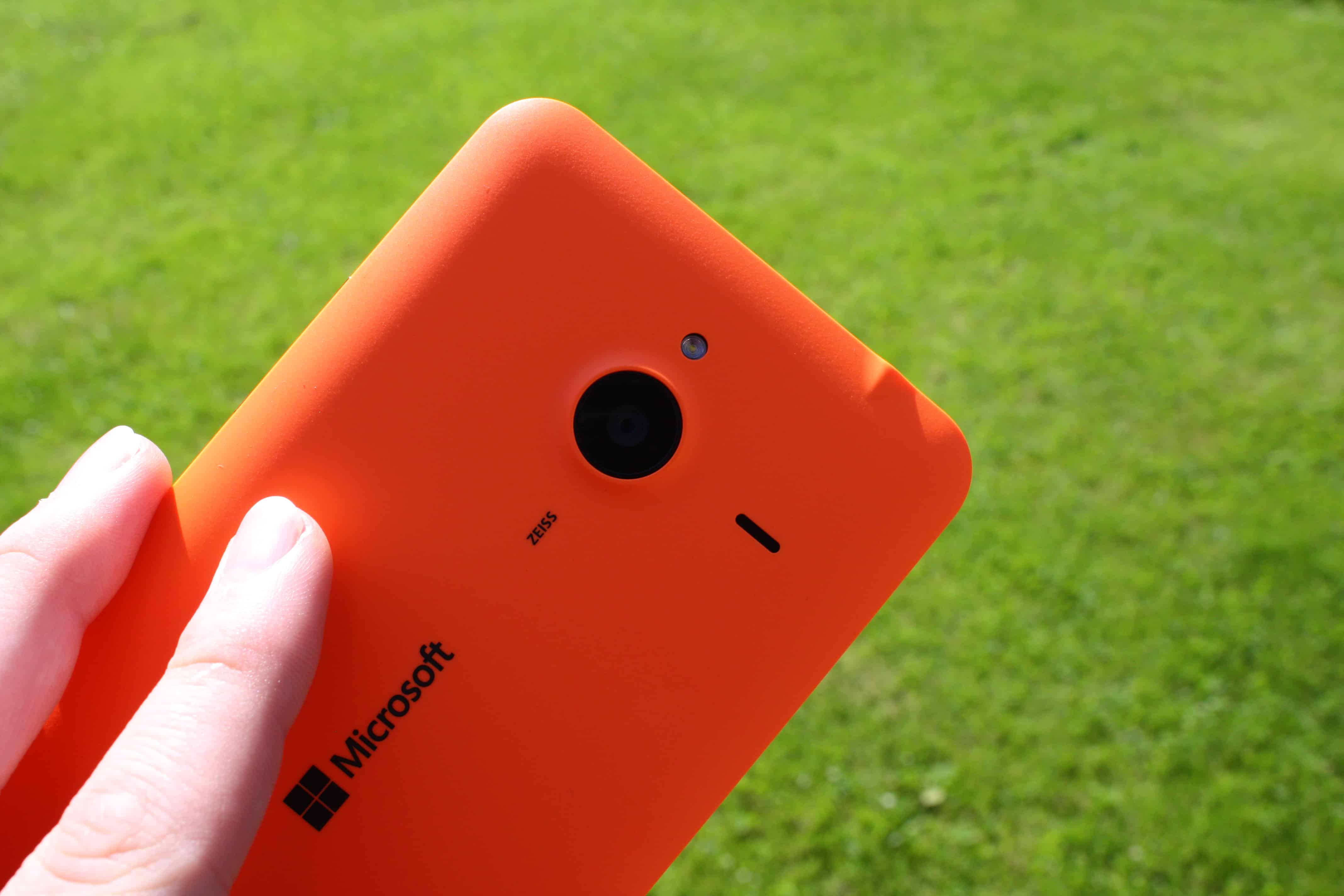 Microsoft Lumia 640 XL – puhelimessa on muovinen mattapintainen takakuori, joka pysyy mukavasti kädessä. Testijakson aika puhelin ei meinannut edes lipsua kädestä, mutta suuri koko aiheutti satunnaisesti ongelmia. Minkäänlaisia naarmuja ei myöskään ole tullut muutaman viikon kokeilun aikana, vaikka puhelin on seurannut minua joka paikkaan, joka osoittaa, että puhelimessa on käytetty laadukkaita materiaaleja, joka on ollut aina Lumioiden vahvuus. Testipuhelimen väri oli oranssi eikä se ole lainkaan pistänyt silmään, vaikka aiemmin olen suosinut mustaa tai valkoista. Puhelimen voi valita myös valkoisena, mustana tai sinisenä. Takakuoren pystyy myös vaihtamaan jos siltä tuntuu ja näinollen puhelimen väriä voi vaihtaa helposti sijoittamalla muutaman kympin uuteen takakuoreen.