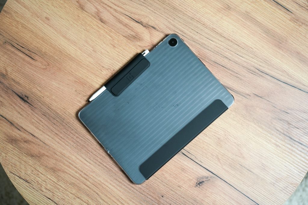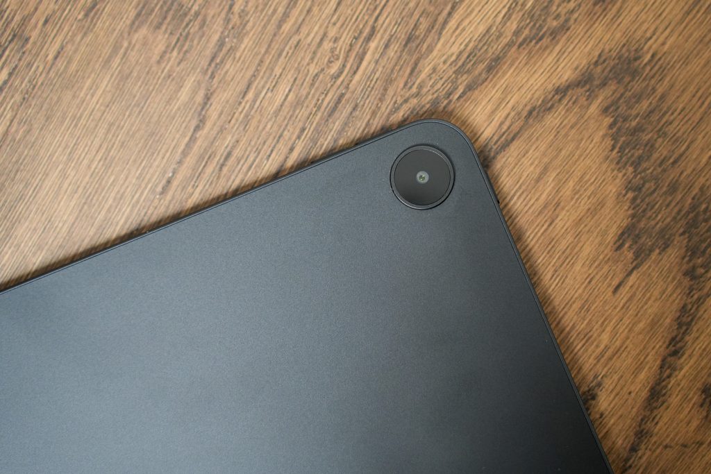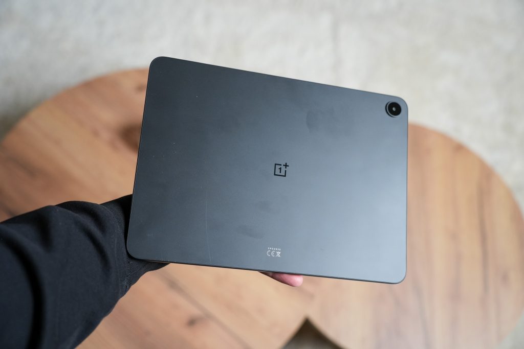 Tabletin takaosa on hyvin pelkistetty. Keskeltä löytyy hillitty OnePlus-logo ja yläkulmaan on sijoitettu yksittäinen kamera pienellä korotuksella. Kokonaisuus on siisti ja käytännöllinen, eikä Pad Go 2 yritä esittää enempää kuin on. Muotoilu on kuitenkin geneerisempi kuin ensimmäisen sukupolven mallissa, jossa oli OnePlussalle uniikki muotoilu.