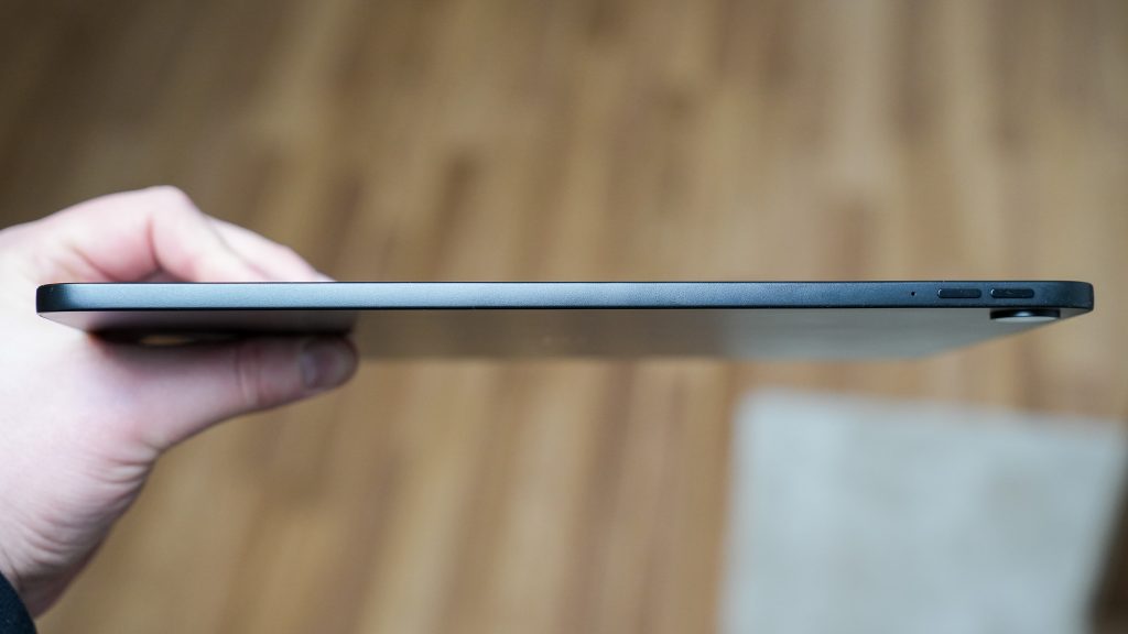 Mitoiltaan OnePlus Pad Go 2 on 266,01 x 192,77 x 6,83 millimetriä, eli paksuus on pidetty miellyttävän maltillisena. Tabletti ei tunnu kömpelöltä, vaikka näytön koko on suuri, ja kokonaisuus on selvästi suunniteltu nimenomaan viihde- ja arkikäyttöä silmällä pitäen.