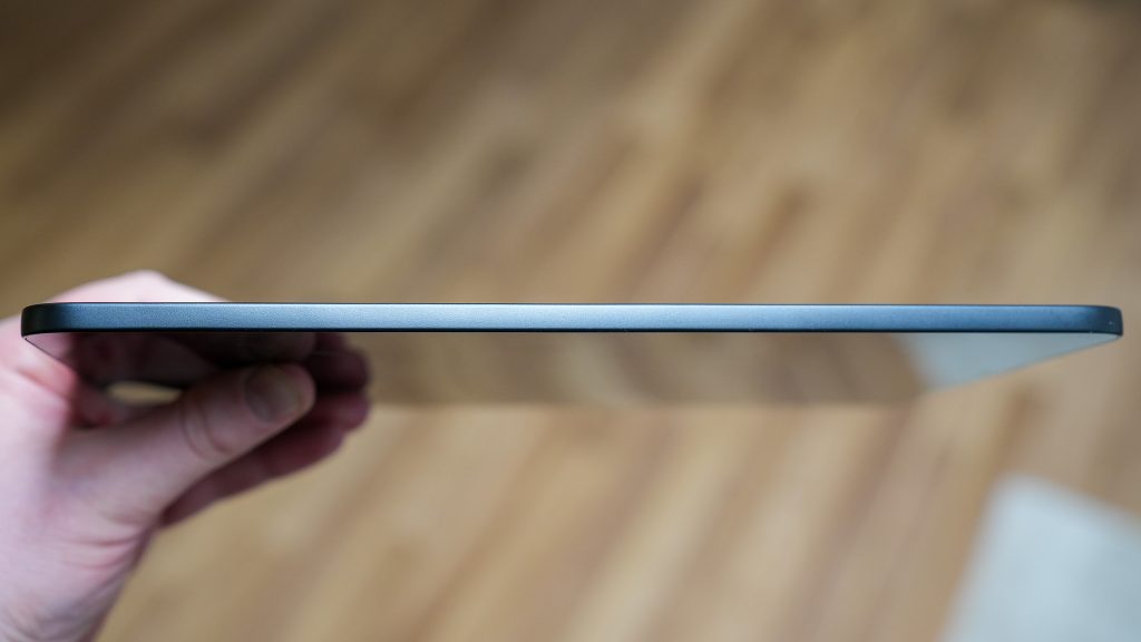 Testiin saatu Shadow Black -väriversio on mattapintainen ja hillitty, mutta valitettavasti pinta kerää sormenjälkiä melko herkästi. Tämä korostuu erityisesti ilman suojakuorta käytettäessä. Mattapinta tuo kuitenkin laitteelle arvokkaamman yleisilmeen ja auttaa osaltaan pitämään tabletin liukumatta käsissä. Yleisesti mattapinta ei ole myöskään liian herkkä naarmuille.