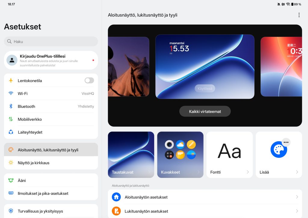 Tablettiin on saatu Wi-Fi 6 -tuki, joten uusimmasta tekniikasta ei ole kyse. Verkkoyhteyksien osalta en itse havainnut ongelmia testijakson aikana. OnePlus Pad Go 2:ssa on Bluetooth 5.4 -yhteys ja tuettuna on kaikki tärkeimmät koodekit, jotka ovat SBC, AAC, aptX, aptX HD sekä LDAC. Testijakson aikana Bluetooth tuntui toimivan tabletissa hyvin, eikä esimerkiksi kuulokkeiden kanssa havaittu ongelmia.