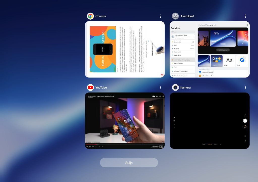 Moniajon osalta OnePlus Pad Go 2 tarjoaa saman Open Canvas -toiminnon, joka on aiemmin nähty vain valmistajan kalliimmissa tableteissa. Open Canvas mahdollistaa useiden sovellusten käytön samanaikaisesti joustavasti. Sovelluksia voi käyttää esimerkiksi 90/10-jaolla, jossa toinen sovellus pysyy pienempänä sivussa ja laajenee tarvittaessa nopeasti täyteen näkymään. Tämä tekee moniajosta yllättävän luontevaa ja erottaa Pad Go 2:n monista muista keskihintaisista Android-tableteista.
