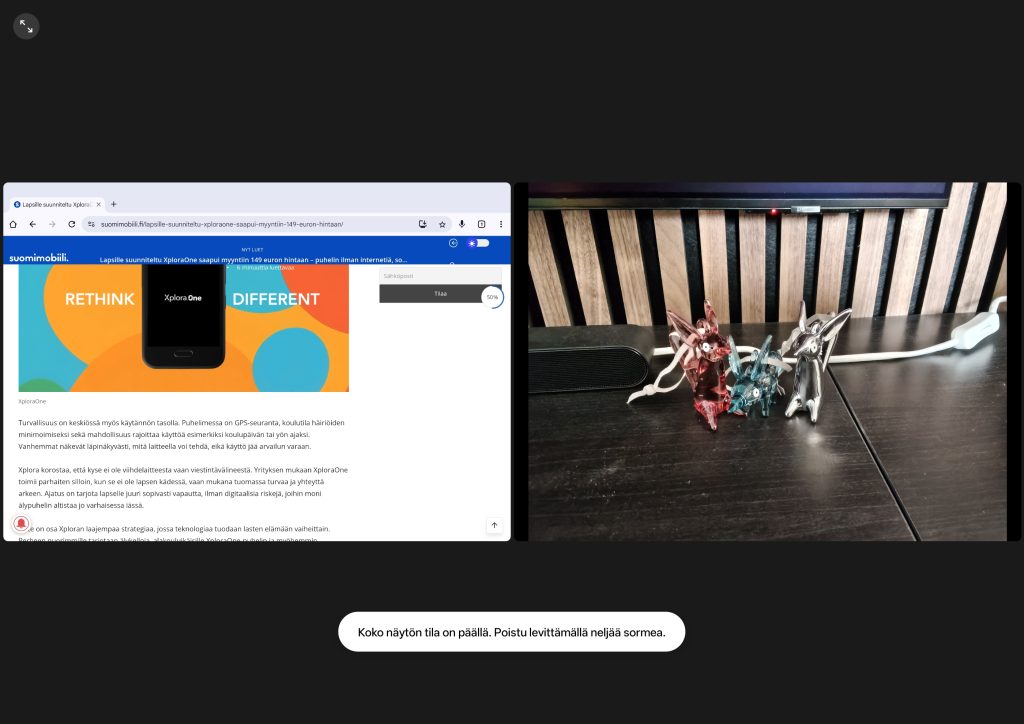 - Open Canvas: kaksi sovellusta auki toinen suurennettuna, ja niiden välillä voi siirtyä.