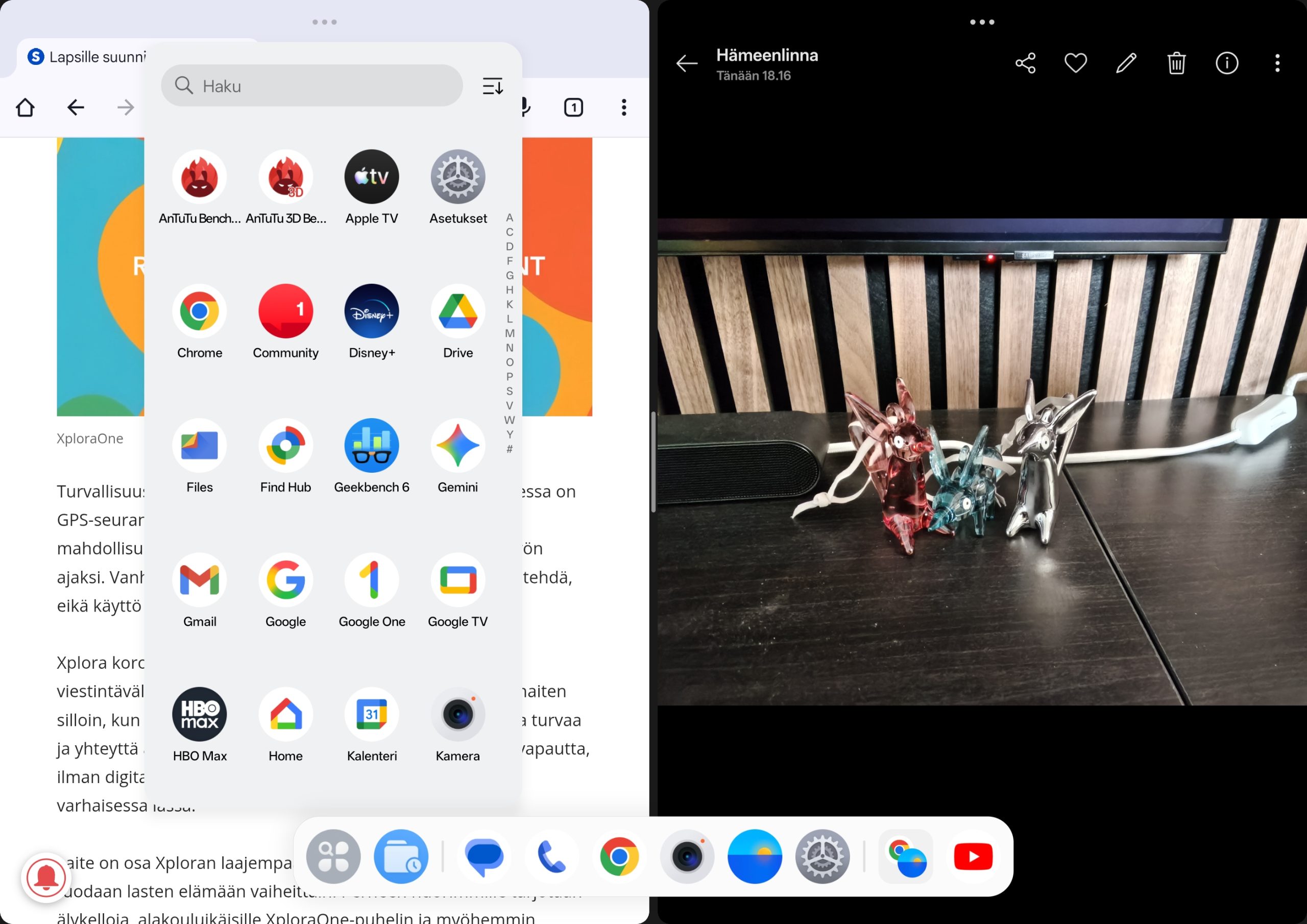 Moniajon osalta OnePlus Pad Go 2 tarjoaa saman Open Canvas -toiminnon, joka on aiemmin nähty vain valmistajan kalliimmissa tableteissa. Open Canvas mahdollistaa useiden sovellusten käytön samanaikaisesti joustavasti. Sovelluksia voi käyttää esimerkiksi 90/10-jaolla, jossa toinen sovellus pysyy pienempänä sivussa ja laajenee tarvittaessa nopeasti täyteen näkymään. Tämä tekee moniajosta yllättävän luontevaa ja erottaa Pad Go 2:n monista muista keskihintaisista Android-tableteista.