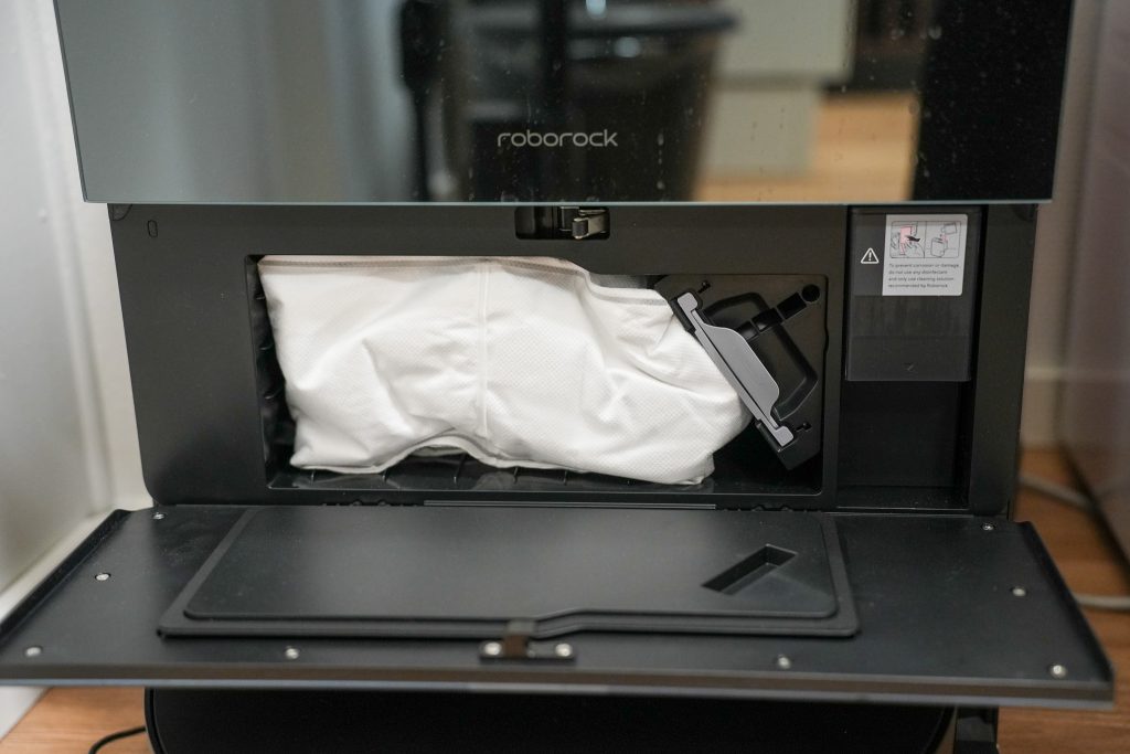 Käytännön kannalta merkittävä ominaisuus on automaattinen pölysäiliön tyhjennys. Kun Roborock Saros 10 palaa telakkaansa, se tyhjentää keräämänsä roskat suoraan pölypussiin. Tyhjennyksen aikana ääni on kova, mutta onneksi kyseessä on vain hetken kestävä hurina. Se on oikeasti pieni hinta siitä, ettei imurin omaan pölysäiliöön tarvitse koskaan koskea itse. Lisäksi imurointitila itsessään on hiljainen, eli ainakaan kuulokkeiden läpi imurointiääntä ei edes huomaa.