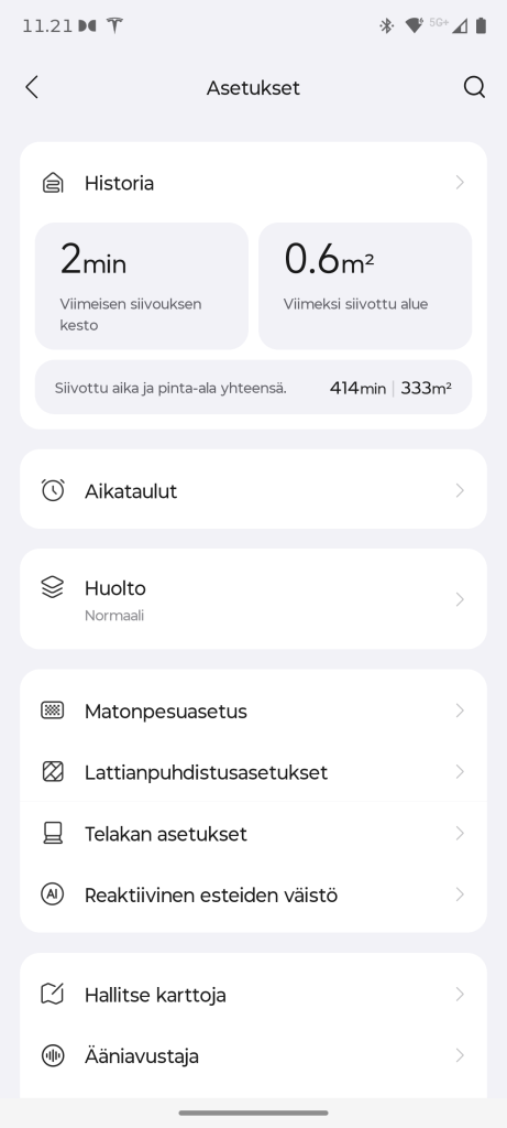 Erityisen hienoa on, että Roborock-sovellus on vihdoin saatavilla suomeksi, ja sen toiminnallisuudet ovat todella kattavat.