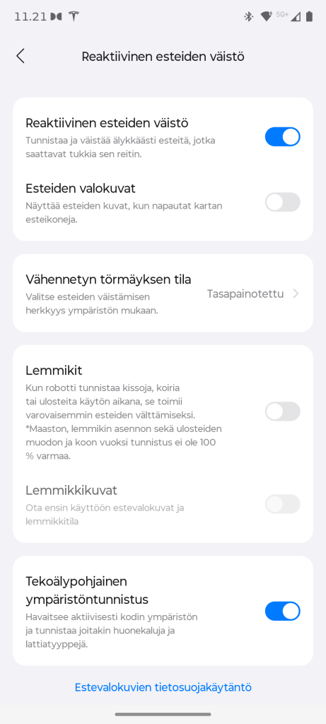 Roborock-sovellus on kattava ja toimii myös suomeksi