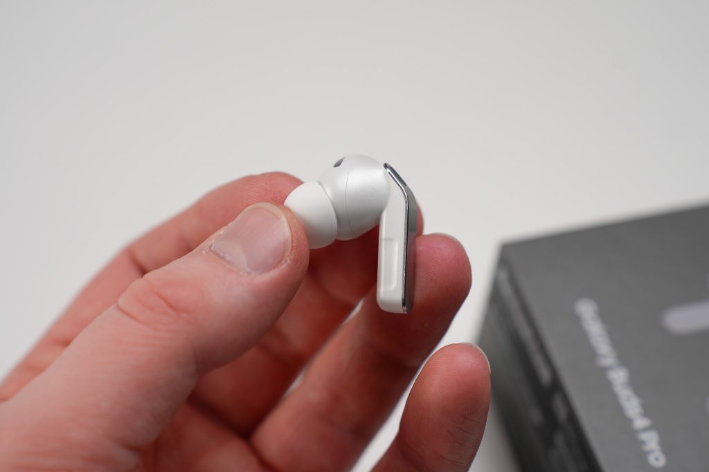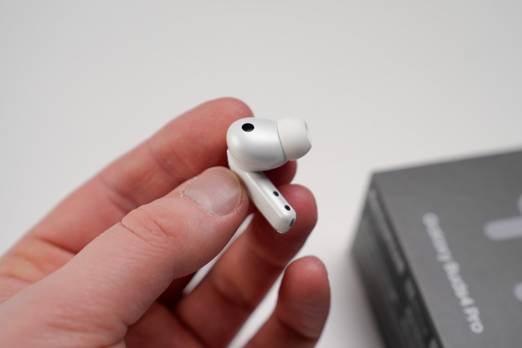 Istuvuuden osalta Galaxy Buds 4 Pro on lähtökohdiltaan todella vakuuttava. Vain 5,1 gramman painoiset kuulokkeet asettuvat korvaan luontevasti, ja pieneen kulmaan asetetut silikonitulpat auttavat tiiviin istuvuuden muodostamisessa. Samsung tarjoaa lisäksi sovelluksen kautta korvaan istuvuuden testin, joka varmistaa nopeasti, että tiivistys on kunnossa.