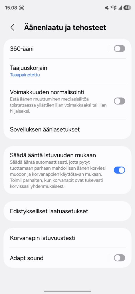 Markkinoiden kärkeä Galaxy Buds 4 Pro ei silti aivan saavuta, sillä äänessä Samsung ei pääse Sony WF-1000XM6 -kuulokkeiden tasolle. Sony tarjoaa edelleen hieman enemmän dynamiikkaa ja elävyyttä äänessä, mutta Samsung on ottanut selkeän askeleen oikeaan suuntaan. Useimmille käyttäjille äänenlaatu on enemmän kuin riittävä, ja monelle jopa erinomainen.