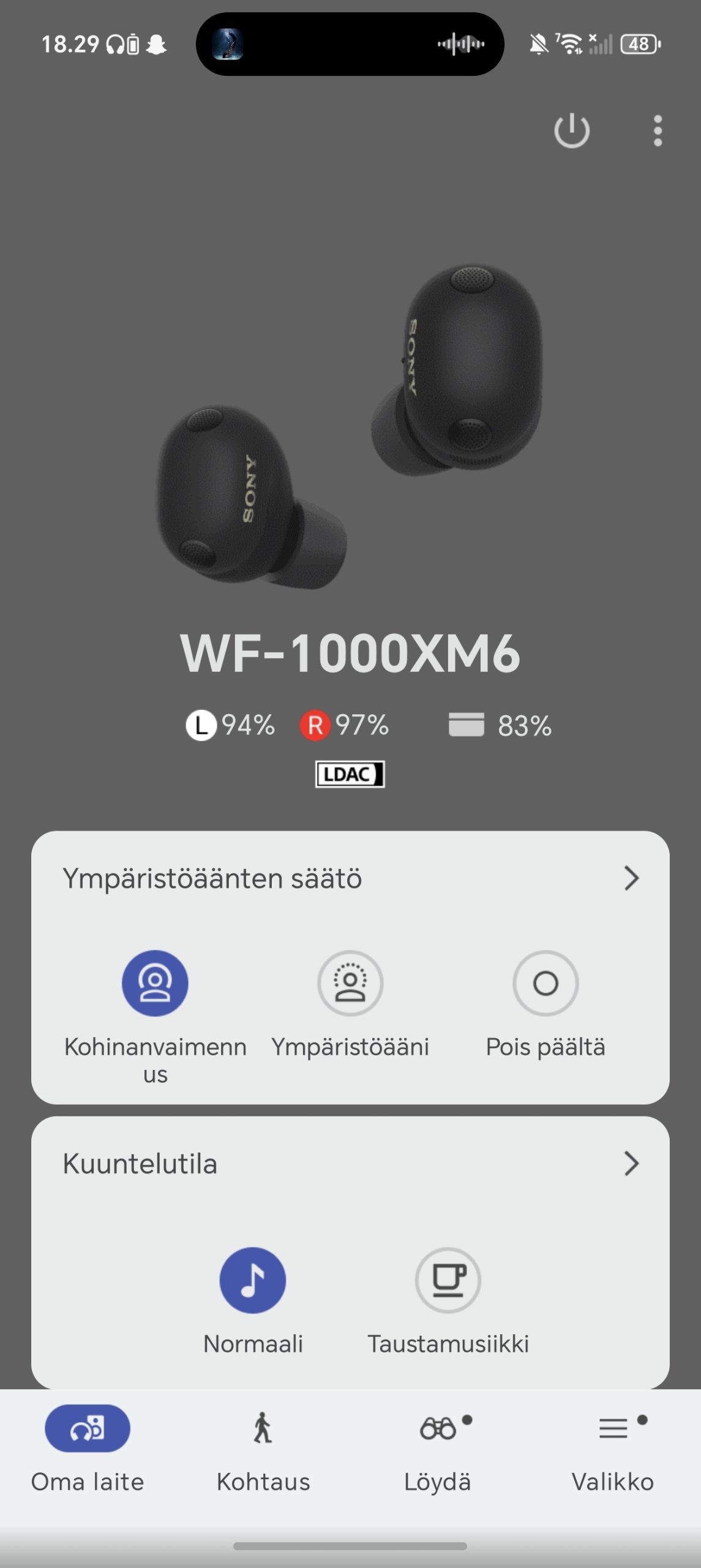 Sony on itse kertonut melunvaimennuksen vähentävän melua jopa 25 prosenttia enemmän kuin WF-1000XM5-mallissa. Kyseessä on selvä parannus, jonka siis huomasi myös käytössä.