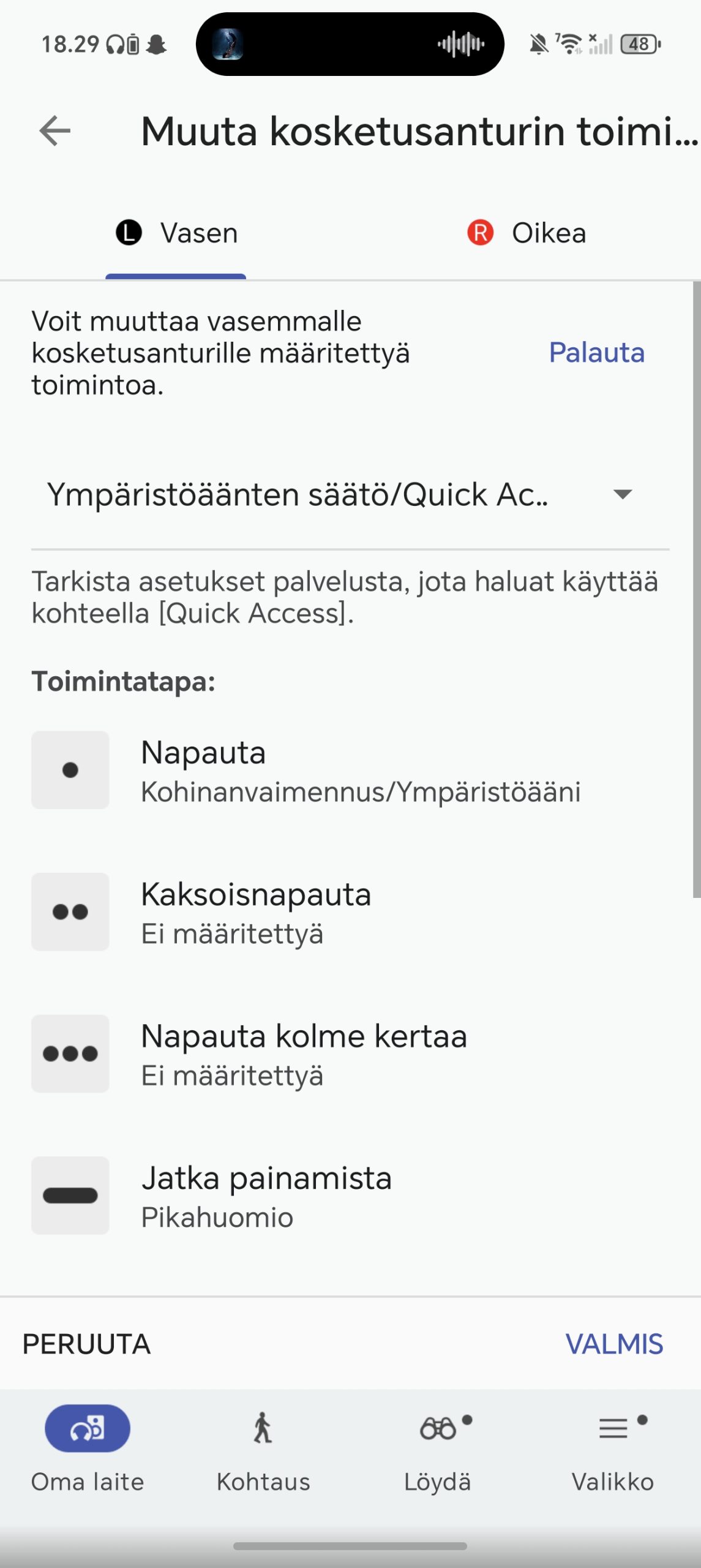 - Ohjattavuus: Napautusohjaus kuulokkeissa