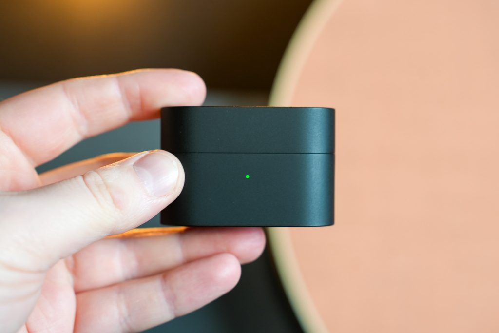 Sony on uudistanut latauskotelon muotoilua aiempaa kulmikkaammaksi, mikä tuo siihen selvästi uutta ilmettä. Muutos toimii hyvin, sillä kotelo on edelleen kompakti ja helposti mukana kuljetettava. Se mahtui ongelmitta taskuun eikä tuntunut häiritsevältä mukana kannettaessa.