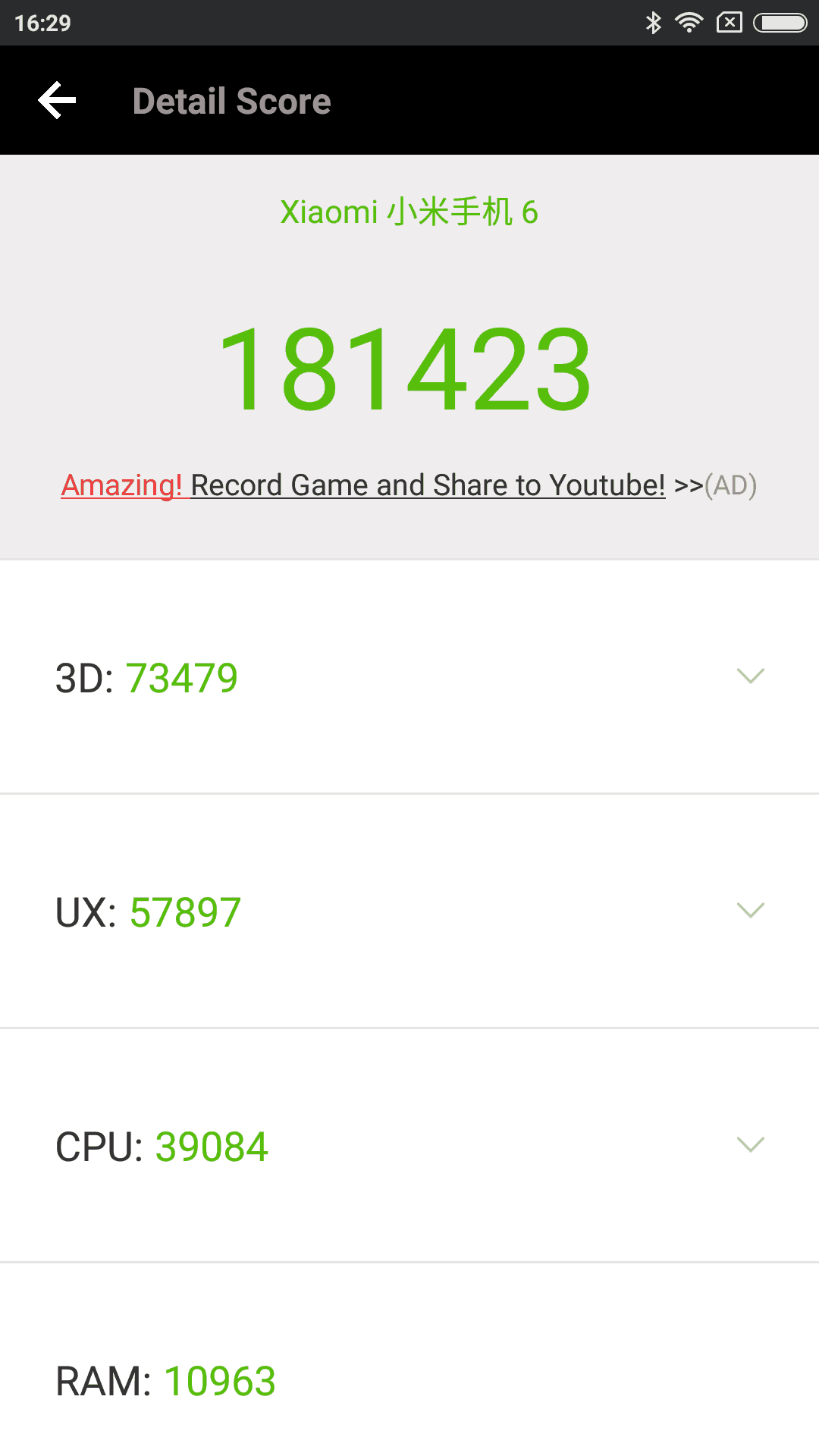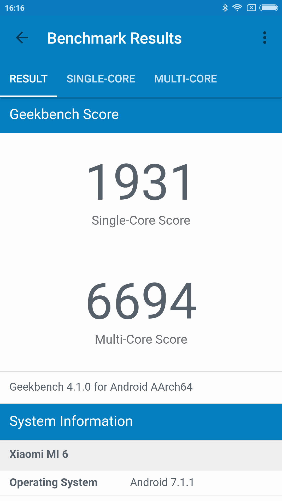 Ajoimme Xiaomi Mi 6:ssa läpi tutut Geekbench 4- ja AnTuTu -suorituskykytestit, joissa puhelin pärjäsi erityisen hyvin. Koska laitteen sisuksissa hyrrää Qualcommin Snapdragon 835 -tehopiiri, niin Mi 6 on suorituskyvyltään markkinoiden kärkeä. AnTuTu-testissä Xiaomi Mi 6 sai 181 423 pistettä, joka on loistava tulos. Puhelimen yleisessä suorituskyvyssä ei ollut testijakson aikana minkäänlaisia ongelmia, sillä kaikki raskaammatkin pelit tuntuivat toimivan sulavasti.