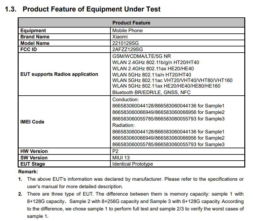 Xiaomi 12 Lite NE 5G on FCC-tietokannan mukaan tulossa saataville kolmessa muistivaihtoehdossa, jotka ovat 6 + 128 gigatavua, 8 + 128 gigatavua sekä 8 + 256 gigatavua.