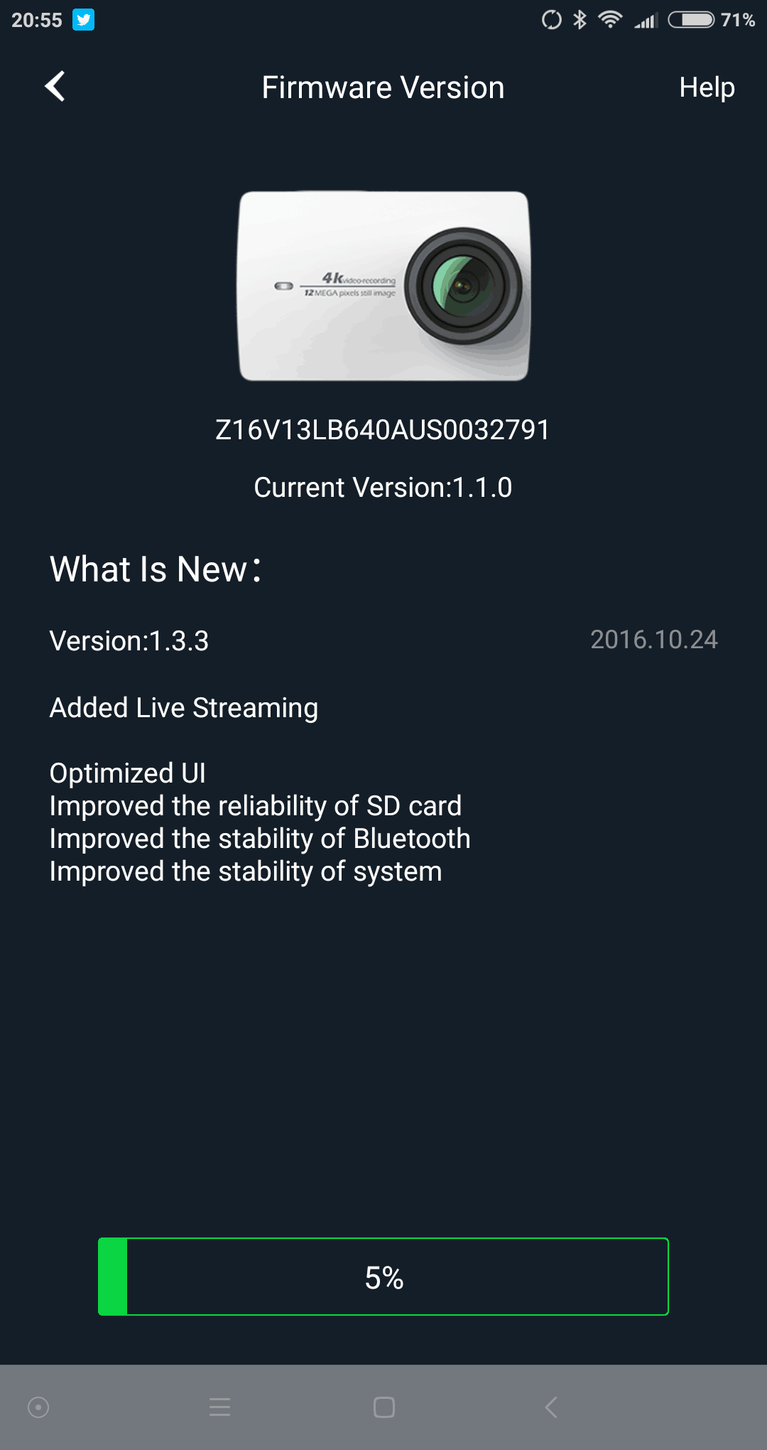 Xiaomilta löytyy Googlen Androidille sekä Applen iOS:ille kyhitetty Yi Action -sovellus. Mobiilisovelluksella voidaan säätää kameran asetuksia täysin koskematta itse kameraan. Sovellus on erittäin hyvä lisäys pakettiin ja helpottaa kuvausta hankalissa tilanteissa kuten vedenkestävän kuoren kanssa. Laitteiden yhdistäminen oli keskivertoa helpompaa. Sovelluksesta löytyy myös videoiden sekä kuvien jakopalvelu, jolla voidaan jakaa parhaimmat otokset miljoonien Yi-fanien kanssa. Sovelluksessa on myös kuvien muokkausmahdollisuus, joka on erittäin helppo.