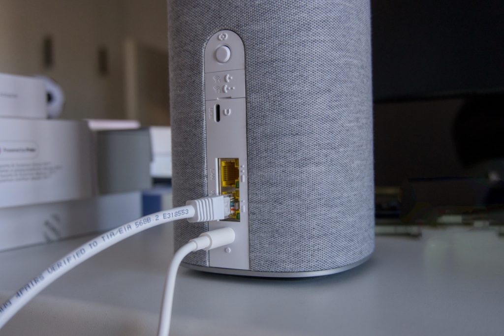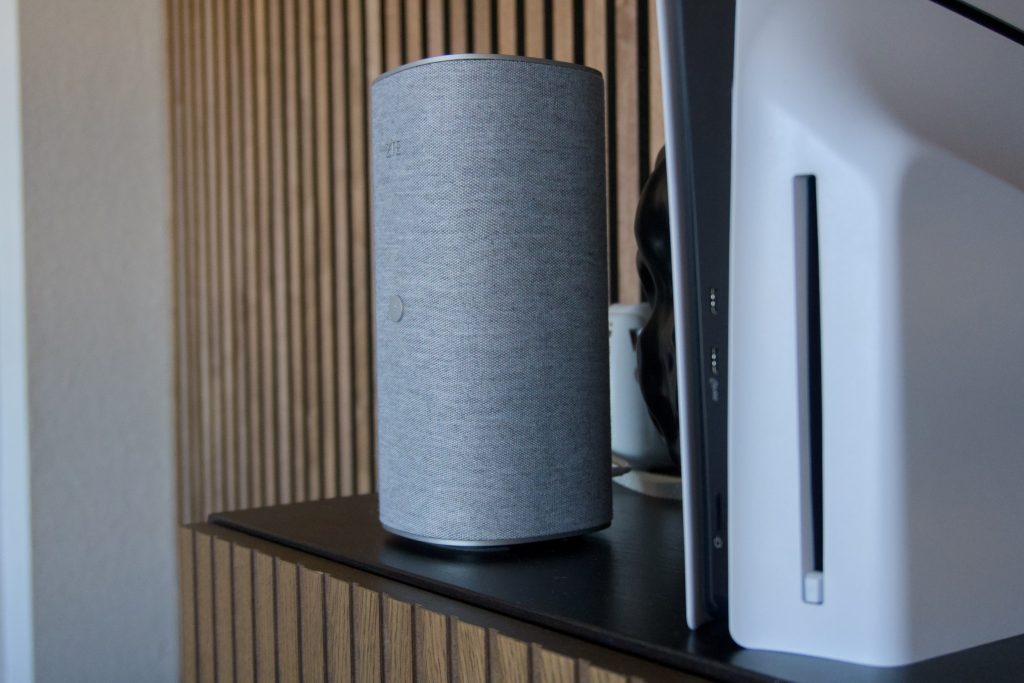 Ensivaikutelma G5 Ultrasta on poikkeuksellinen, sillä perinteisen “laatikon” sijaan laite muistuttaa enemmän modernia sisustuselementtiä tai kaiutinta. Kangaspintainen sylinterimäinen muotoilu ja metallinen yläosa tekevät siitä huomaamattoman osan kodin sisustusta.